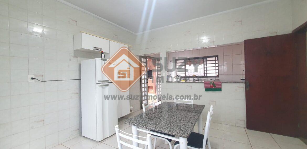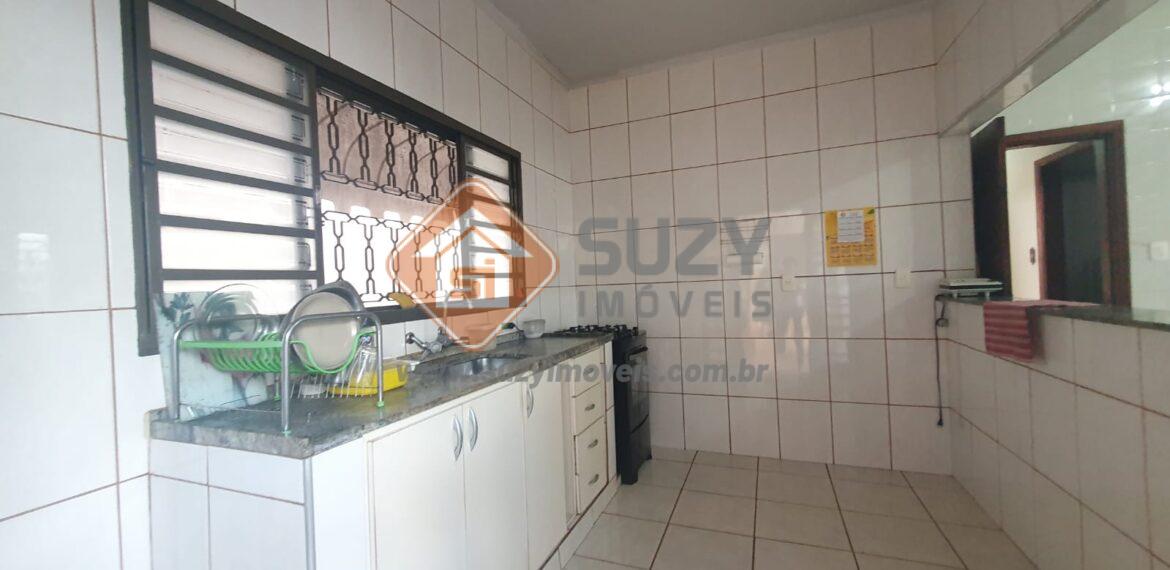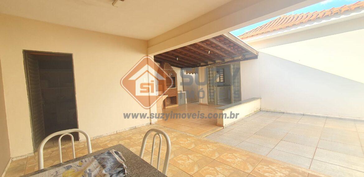 Casa com 02 dormitórios, sala ampla, 01 w.c social, sala de jantar, cozinha com armários, edícula com quarto, w.c externo, varanda, churrasqueira, área de lazer, quintal, garagem para 03 veículos cobertos