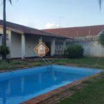 03 dormitórios todos com armários, sendo 01 suíte com closet, 01 w. c social, hall de entrada, sala de visitas, sala de jantar, lavabo, cozinha completa, área de serviço, quarto de despejo com w.c, mezanino com escritório e sala de t.v, área de lazer com varanda, churrasqueira e piscina, quintal grande, garagem para 04 carros sendo 02 cobertos na parte coberta. Imóvel excelente para clinicas.