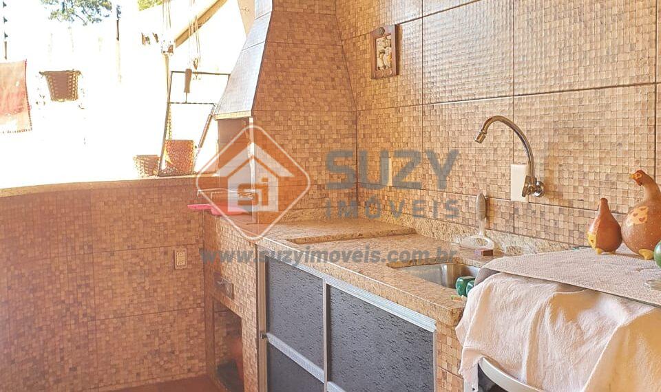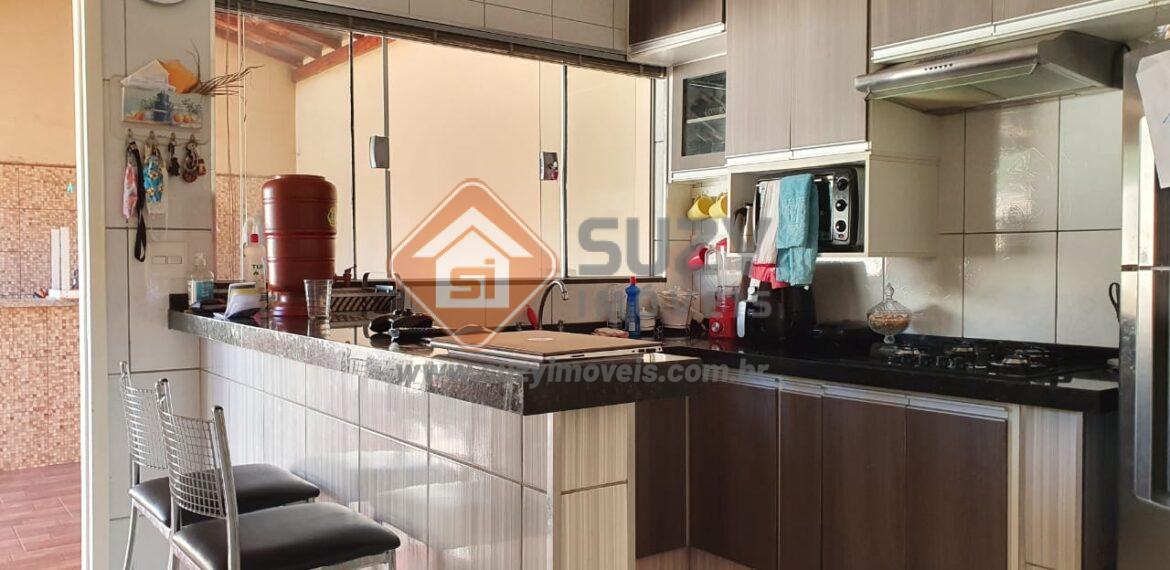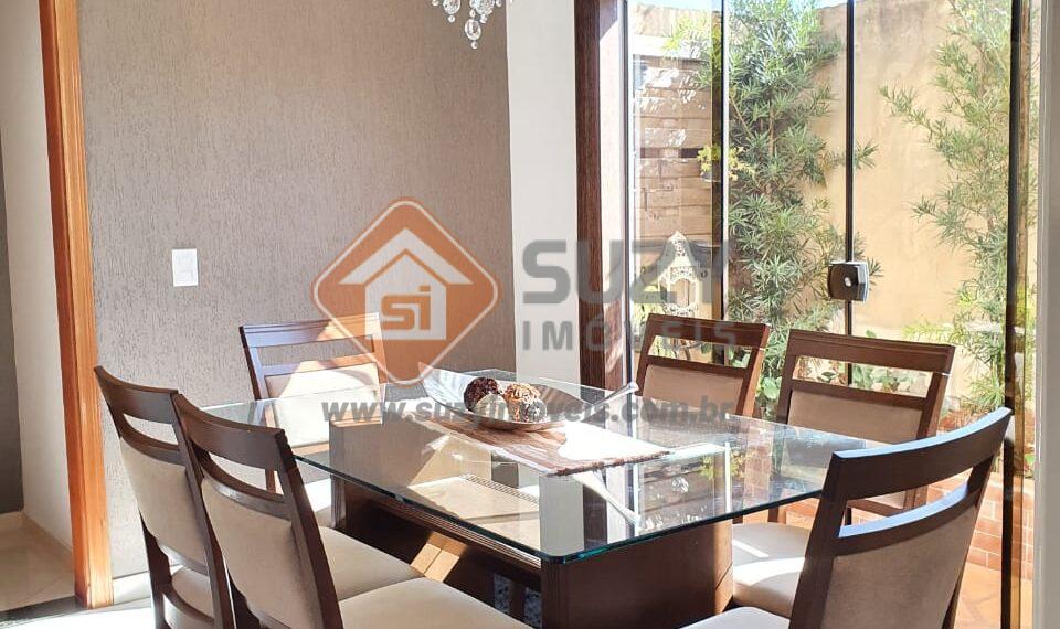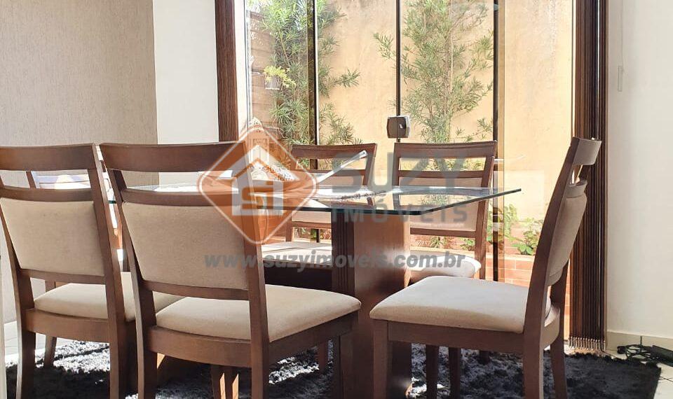 02 dormitórios sendo a suíte principal com closet e 02 com armários, w.c social, sala de visitas, sala de jantar com jardim de inverno, cozinha modulada com armários, área de serviço, área gourmet com churrasqueira e varanda, w.c externo, garagem para 03 carros descobertos.