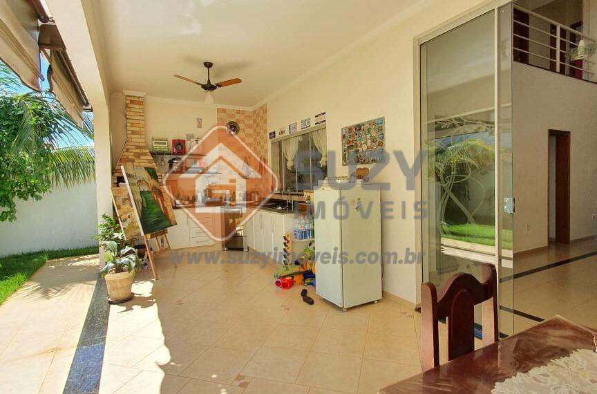Piso Superior com 03 dormitórios, w.c social, saleta de t.v, varanda. Piso Térreo com 01 suíte completa com closet, sala de visitas, sala de jantar, lavabo, cozinha com armários, àrea gourmet com churrasqueira e varanda grande, quintal, w.c externo, área de serviço, corredor com prateleiras, garagem para 02 carros cobertos e 02 fora da cobertura. Condomínio oferece portaria e segurança 24 horas, área de convívio, piscina, quadras poliesportivas, playground, área verde.