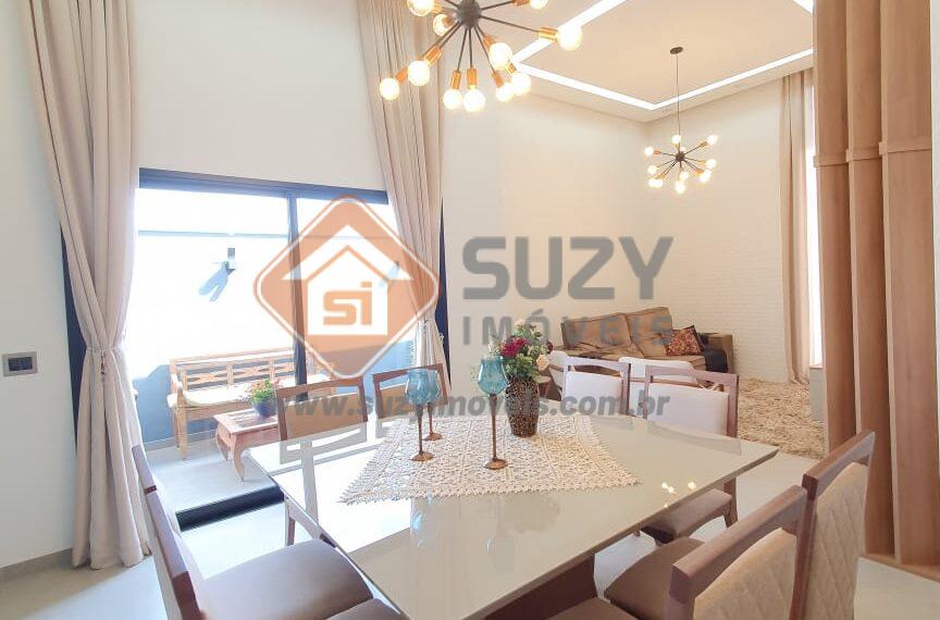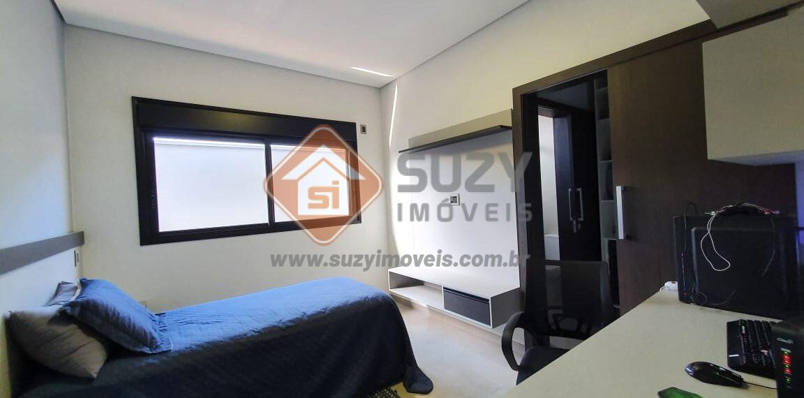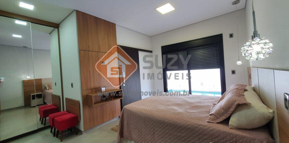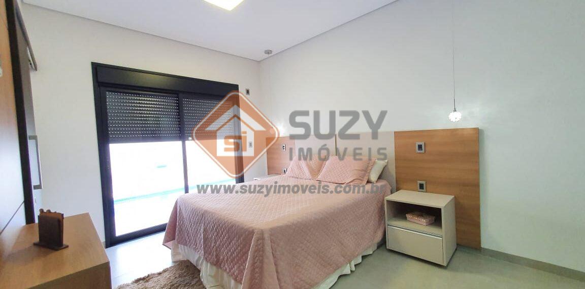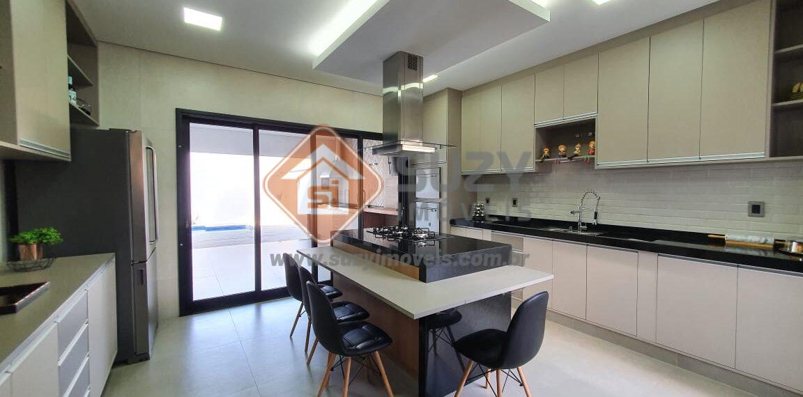 Hall de entrada, 03 dormitórios( sendo 3 suítes completas com closets,) persianas automatizadas, sala de estar t.v, sala de jantar, com jardim de inverno, maravilhosa cozinha com ilha, cooktop, coifa, torre quente, lindos armários, espaço gourmet com churrasqueira, w.c com chuveiro, piscina, jardim, aquecimento solar, garagem para 02 carros cobertos e 02 fora da cobertura Condomínio oferece portaria e segurança 24 horas, salão de convívio, quadras poliesportivas, área verde, playground.
