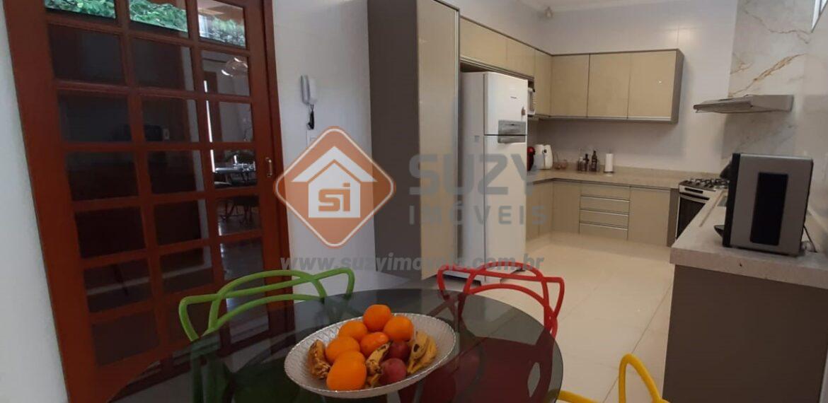 Casa com 05 dormitórios todos com armários (sendo 02 suíte), 01 w.c social, hall de entrada, sala de visitas, sala de jantar, sala de t.v, escritório, lavabo, cozinha completa com armários, área de serviço com armários, área gourmet com churrasqueira, varanda, ofurô com deck, aquecimento solar, ar condicionado nos dormitórios e sala de t.v, garagem para 03 veículos cobertos, cerca elétrica, alarme e câmeras.