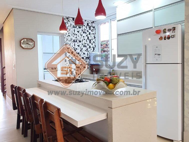 Maravilhosa casa em bairro nobre. Pavimento superior com 03 dormitórios(suíte principal com closet e varanda) 02 com armários, 01 w.c social, sala de T.V. Pavimento térreo: sala de visitas, sala de jantar, lavabo, escritório com móveis planejados, cozinha com armários em conceito aberto, área de serviço, deck com lindo paisagismo, horta, garagem para 02 carros cobertos e 01 fora da cobertura.