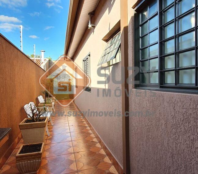 02 dormitórios, sala de visitas,  w.c social, copa cozinha com armários, área de serviço, quintal arborizado, cerca elétrica,  03 vagas de garagem,  sendo  01 coberta e 02 descobertas e excelente localização.