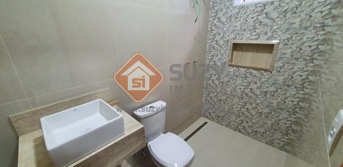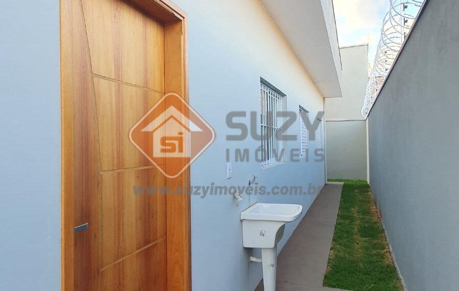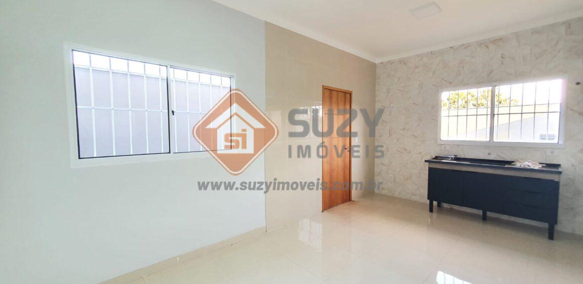 Casa com 03 dormitórios, sendo 01 suíte, w.c. social, sala de visitas, sala de jantar, cozinha, área de serviço descoberta, quintal e garagem para 03 veículos descobertos.