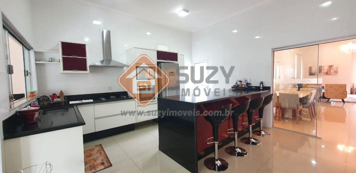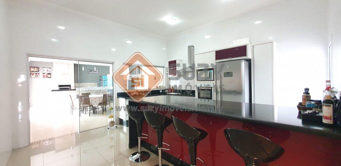 Casa com 03 dormitórios, sendo todos suítes com armários, sala de estar, sala de TV, sala de jantar, escritório, lavabo, cozinha completa com armários, área gourmet integrada com churrasqueira, quintal e 04 vagas de garagem (02 cobertas e 02 descobertas).