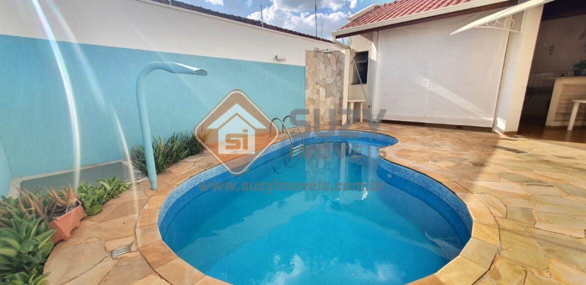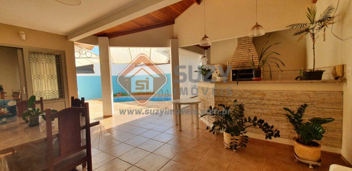 Parte Térrea: escritório, lavabo, sala de estar, sala de jantar, copa cozinha com armários, área de serviço com armários, varanda gourmet com churrasqueira, quarto despejo e w.c social, quintal, piscina, aquecimento solar e garagem para 04 carros sendo 02 cobertos e 02 fora da cobertura.