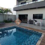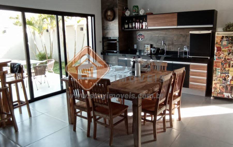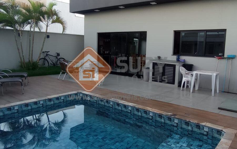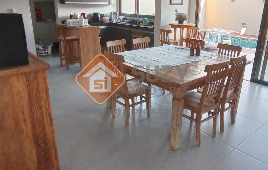 Parte inferior sala para 02 ambientes, lavabo, área de iluminiação, cozinha planejada com armários, área gourmet integrada a cozinha com w.c, área de serviço , despensa, piscina, ducha, aquecimento solar. Condomínio oferece área de lazer completa e portaria 24 horas, 04 vagas de garagem .