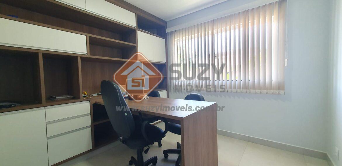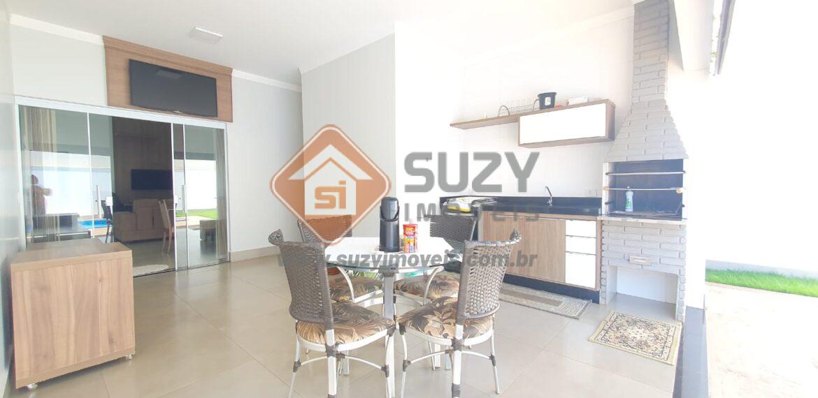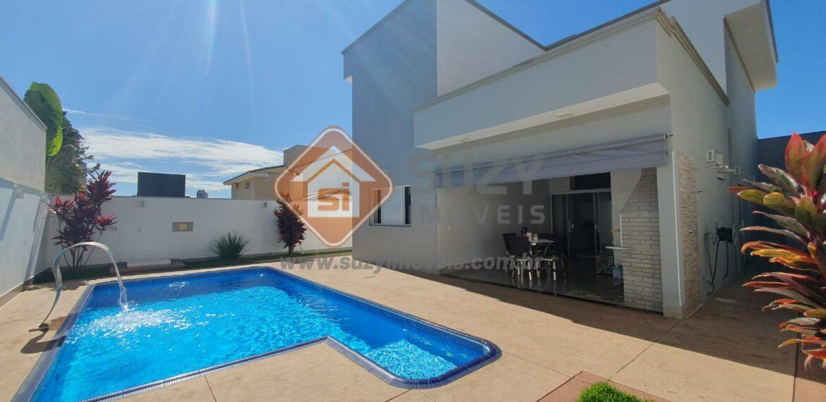 04 suítes todos com armários, sendo 01 suíte master com closet e sacada, sala de estar, sala de jantar, lavabo, escritório com armários, cozinha americana com armários planejados, área de serviço com armários, área gourmet com churrasqueira, w.c externo, piscina, jardim, imóvel com acabamento diferenciado, 02 vagas de garagem cobertas e 02 descobertas.Condomínio oferece portaria 24 horas, salão de festas, brinquedoteca, quadra poliespotiva,espaço gourmet, lago, quadra de tenis, salão de jogos.