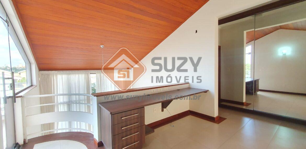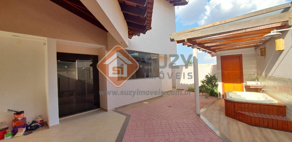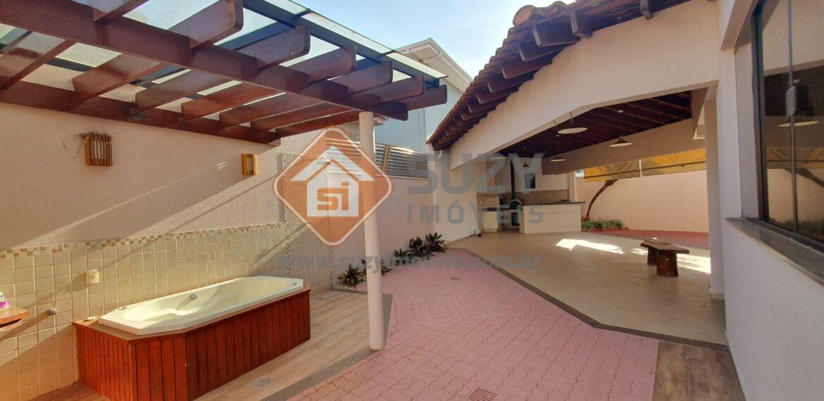 Sobrado em condomínio de alto padrão, sendo o piso térreo com sala ampla de 02 ambientes, lavabo, cozinha ampla com armários, fogão, coifa, despensa com armários, escritório com ar condicionado, jardim de inverno, lavanderia com armários, área gourmet no quintal com quiosque, churrasqueira e fogão a lenha, ôfuro, w.c externo e 04 vagas de garagem. Piso superior com hall de entrada com armários, com 03 suítes, todas com armários, sendo a principal com closet, hidromassagem e varanda para o condomínio.