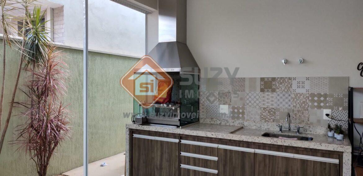 Linda casa com 03 suítes, todas com armários, sendo a principal com closet, escritório com armários, lavabo, hall de entrada, sala para 02 ambiente, TV e jantar, cozinha completa, área de serviço com armários, área gourmet com churrasqueira fechada com vidros, quintal com chuveirão, paisagismo e 04 vagas de garagem (sendo 02 cobertas).
