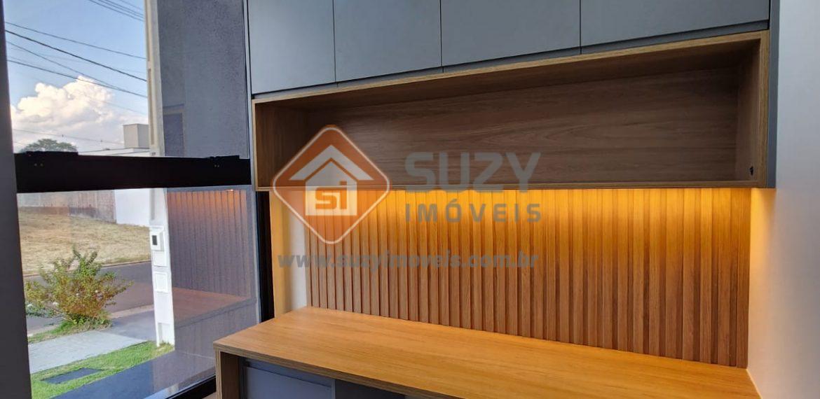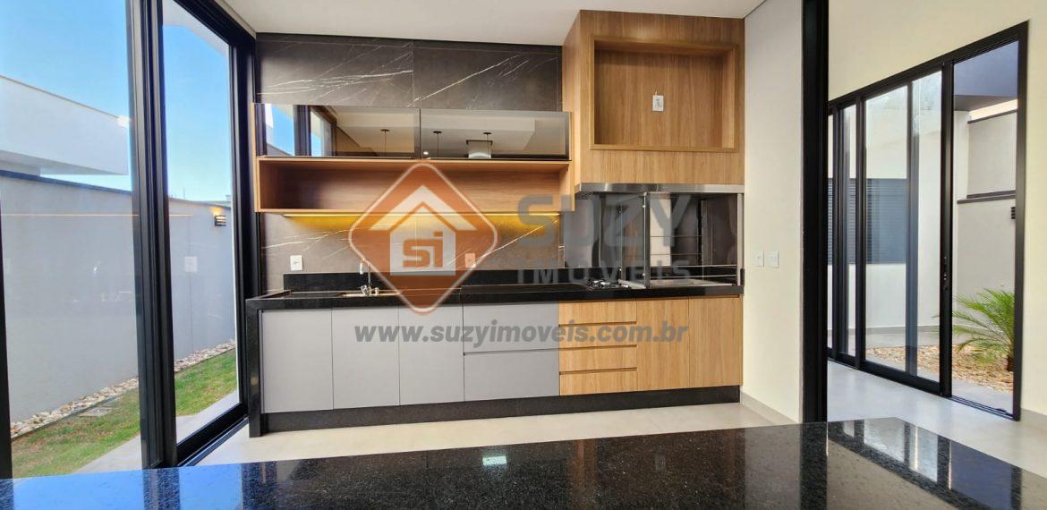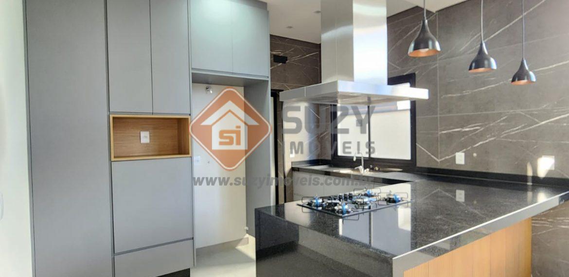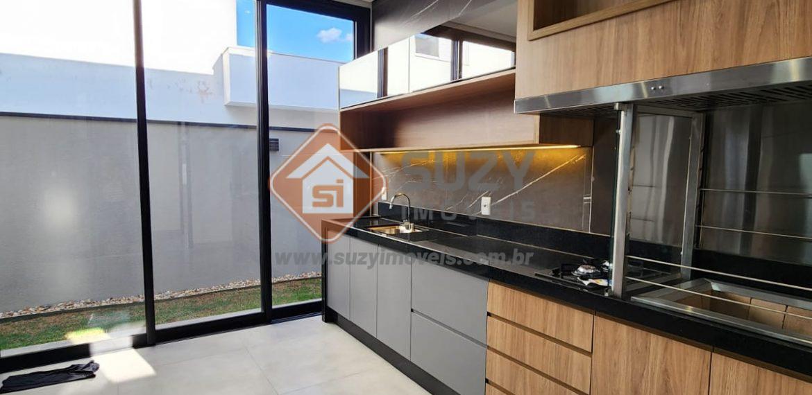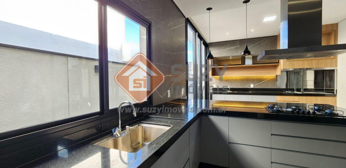 Imóvel recém construído, 03 suítes, sendo a principal com closet, escritório com armários, roupeiro, jardim de inverno, lavabo, sala ampla para 02 ambientes com rack, cozinha integrada à área gourmet com churrasqueira completas, pé direito alto, área de serviço com armários, quintal com área verde e paisagismo e 04 vagas de garagem.