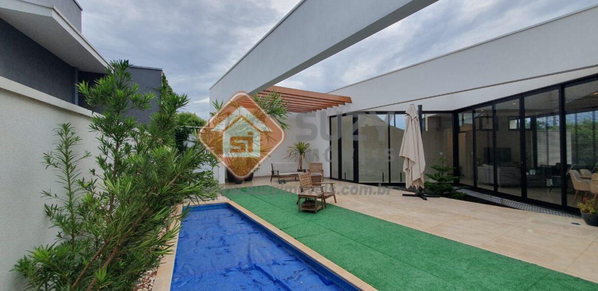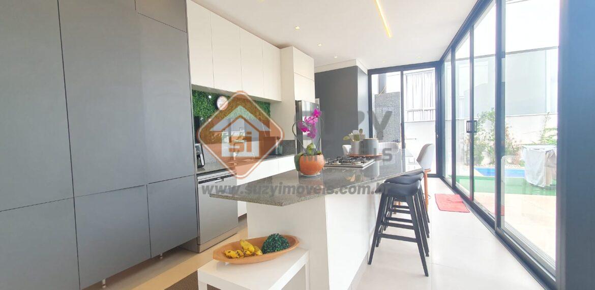 Imóvel maravilhoso com excelente acabamento, em condomínio alto padrão, constituída por 03 suítes, sendo a máster com closet e varanda com paisagismo, hall de entrada, lavabo, salas de estar integradas com projeto diferenciado (desenvolvido por Caio Persighini Arquitetura & Design), sala de jantar, sala de TV, cozinha com armários planejados, área gourmet com churrasqueira, área de serviço com armários, piscina, espaço lazer com pergolado e jardim suspenso, subsolo com sala de cinema completa (sistema de imagem e som valor a parte), escritório, w.c e garagem.
