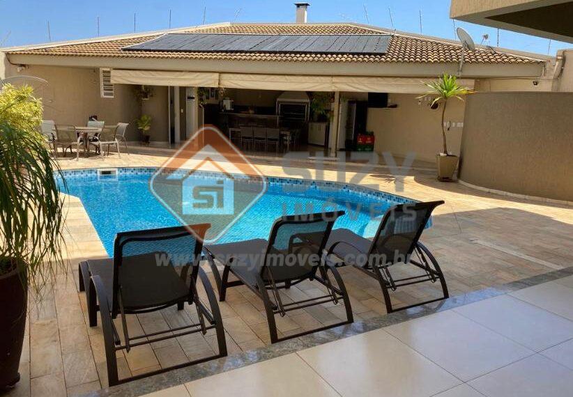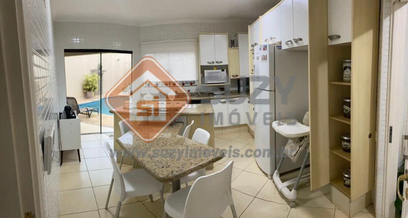 Sobrado com boa localização, constituído na parte superior por 04 dormitórios, todos com armários planejados e ar condicionado, sendo 02 suítes, 01 máster com banheira hidromassagem e closet, w.c social e 02 sacadas. Parte inferior com sala para 03 ambientes com ar condicionado, lavabo, escritório, área de serviço com w.c serviço, área gourmet com churrasqueira, piscina com iluminação em led, sauna, w.c externo e 05 vagas de garagem.