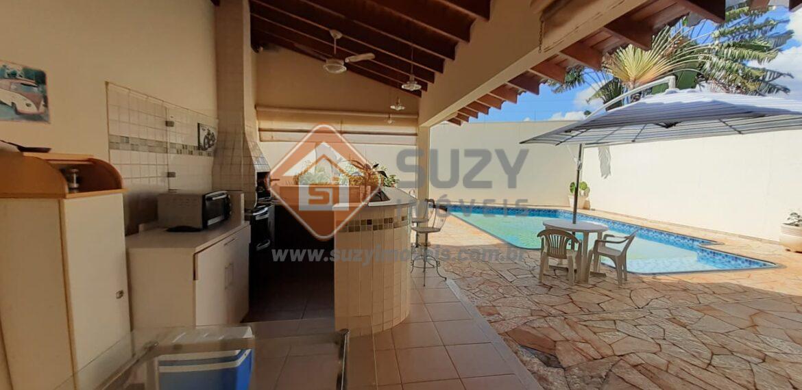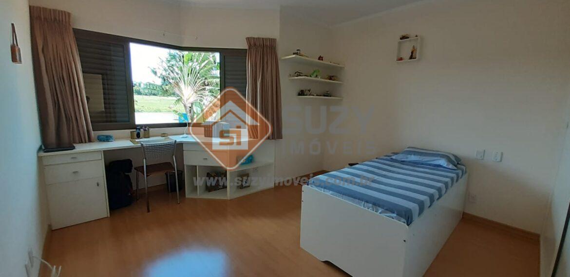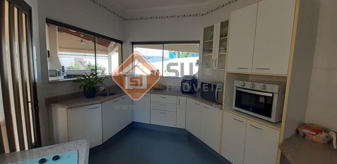 Lindo sobrado em condomínio de alto padrão, constituído no piso superior por hall com 03 suítes, todas com armários, sendo a principal com closet e sacada. Piso térreo: hall de entrada, jardim de inverno, lavabo, escritório, sala de estar, jantar e TV, sala de música, copa, cozinha completa de armários, despensa, área de serviço com armários, área gourmet com churrasqueira, piscina, w.c externo, quintal com paisagismo e 04 vagas de garagem.
