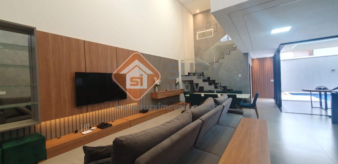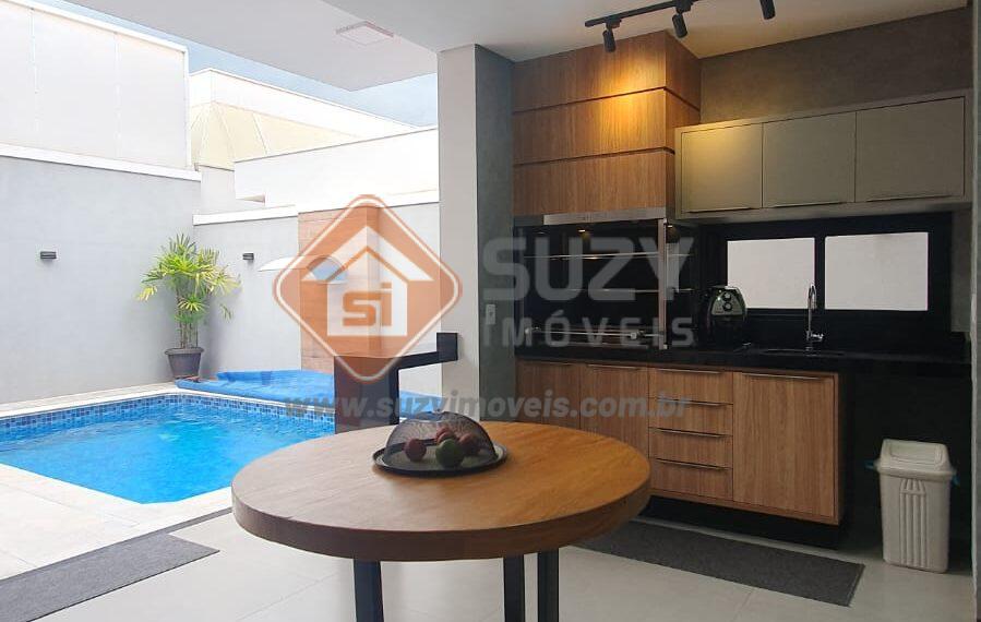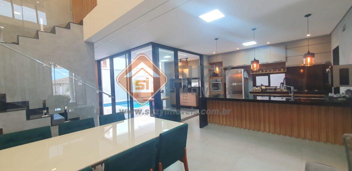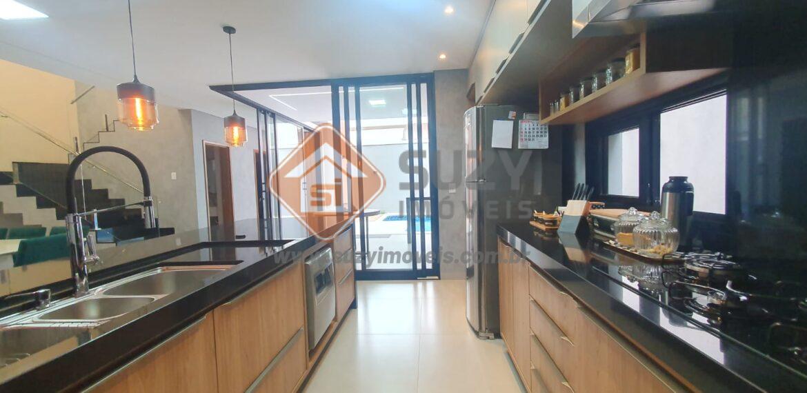 Piso térreo: sala para 03 ambientes com pé direito alto (estar, jantar, TV), cozinha completa com armários, coifa e cooktop, torre quente, 01 suíte completa com armários, lavabo, espaço gourmet com armários e churrasqueira, quintal com chuveirão, piscina aquecida e 04 vagas de garagem, sendo 02 cobertas.