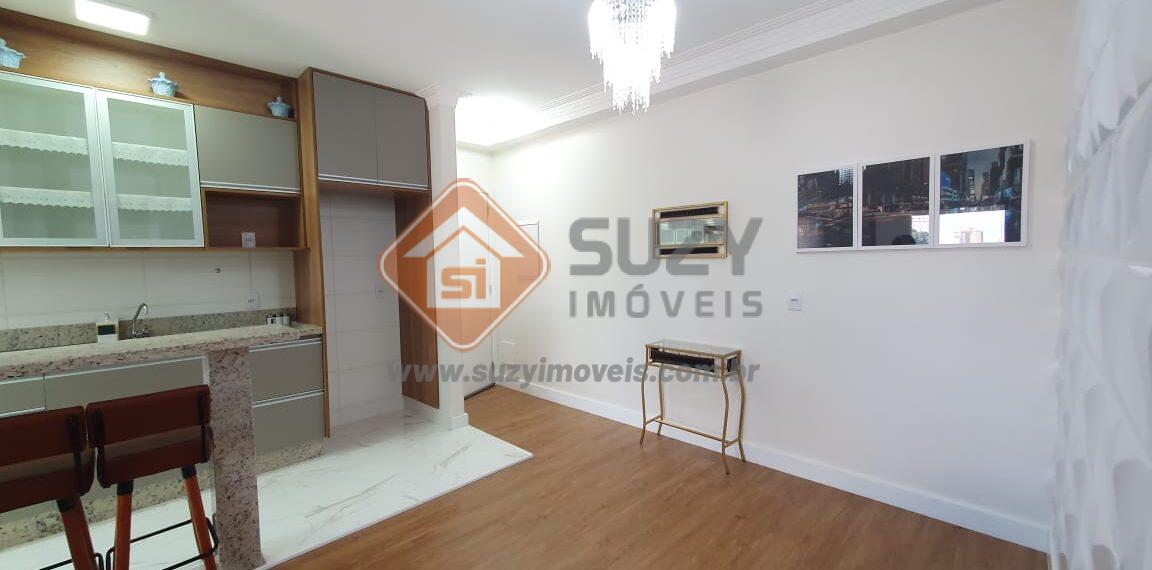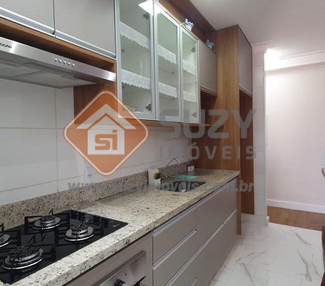 Lindo apartamento com acabamento diferenciado e ar condicionado, constituído por 02 dormitórios, ambos com armários, sendo 01 suíte completa, sala ampla para 02 ambientes com sacada gourmet fechada, w.c social, cozinha com conceito aberto repleta de armários, área de serviço com armários e garagem coberta.