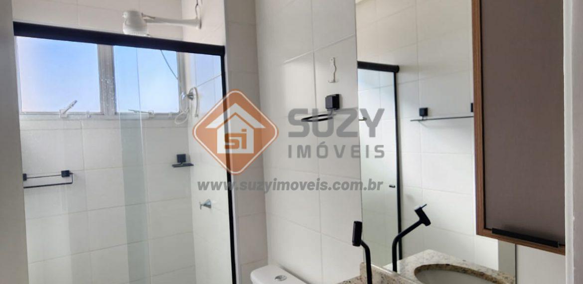 Apartamento com 02 dormitórios, ambos com armários, 01 com ar condicionado, w.c social completo, sala de estar com varanda, cozinha com armários, área de serviço e 02 vagas de garagem, sendo 01 para moto.