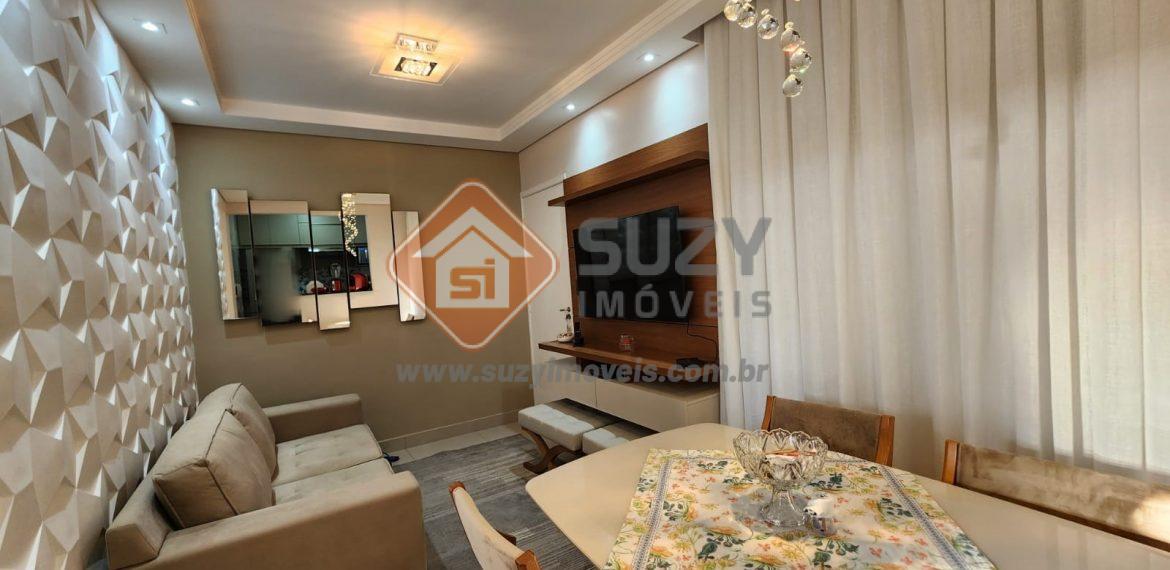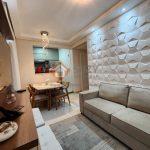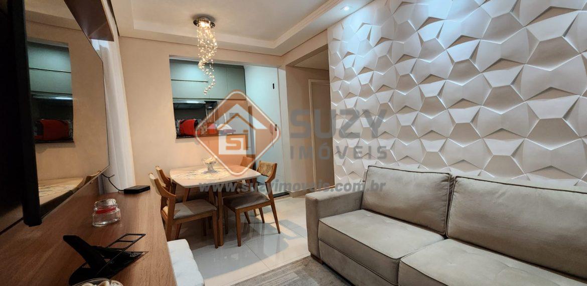 Lindo apartamento reformado, constituído por 02 dormitórios, ambos repletos de armários, sendo 01 com ar condicionado, w.c social completo, sala de estar com rack e jantar com mesa, cortinas, iluminação em led, lustres de cristal, cozinha mobiliada com geladeira, forno, cooktop e exaustor, área de serviço com máquina de lavar roupas e 01 vaga de garagem coberta.