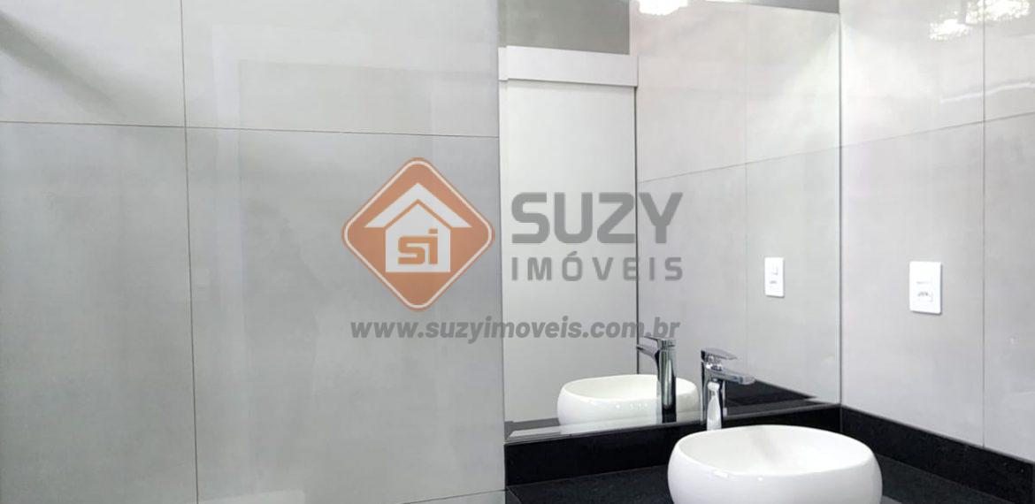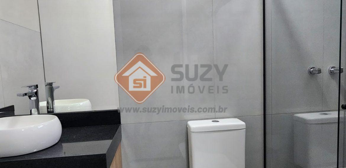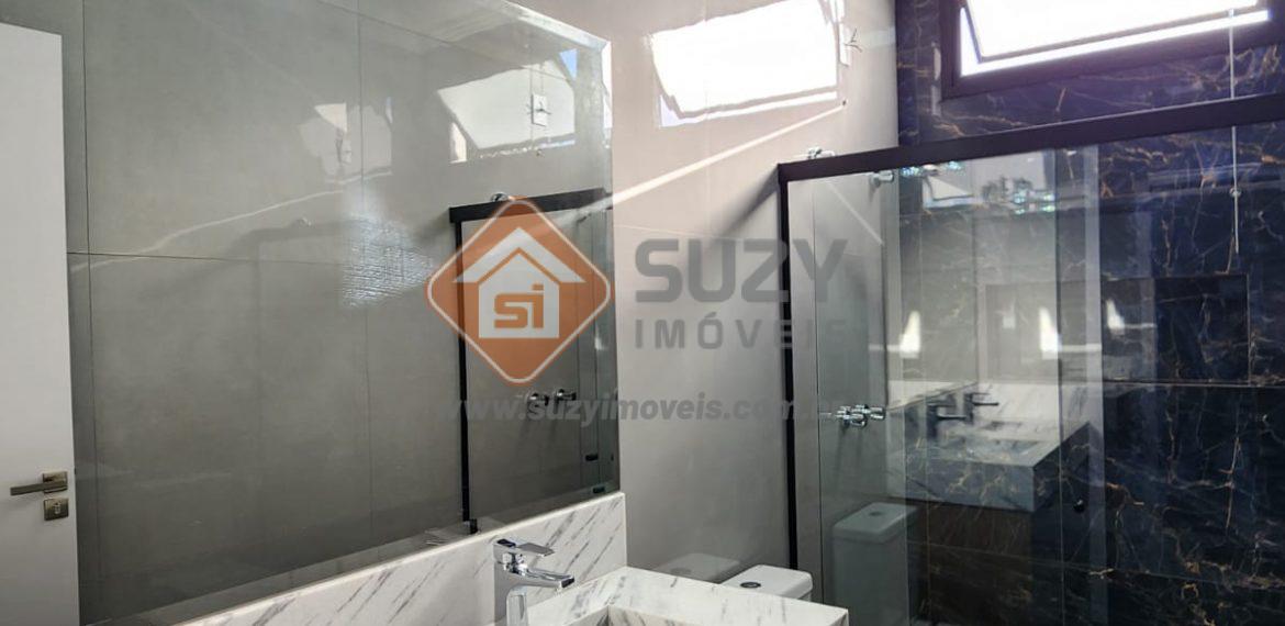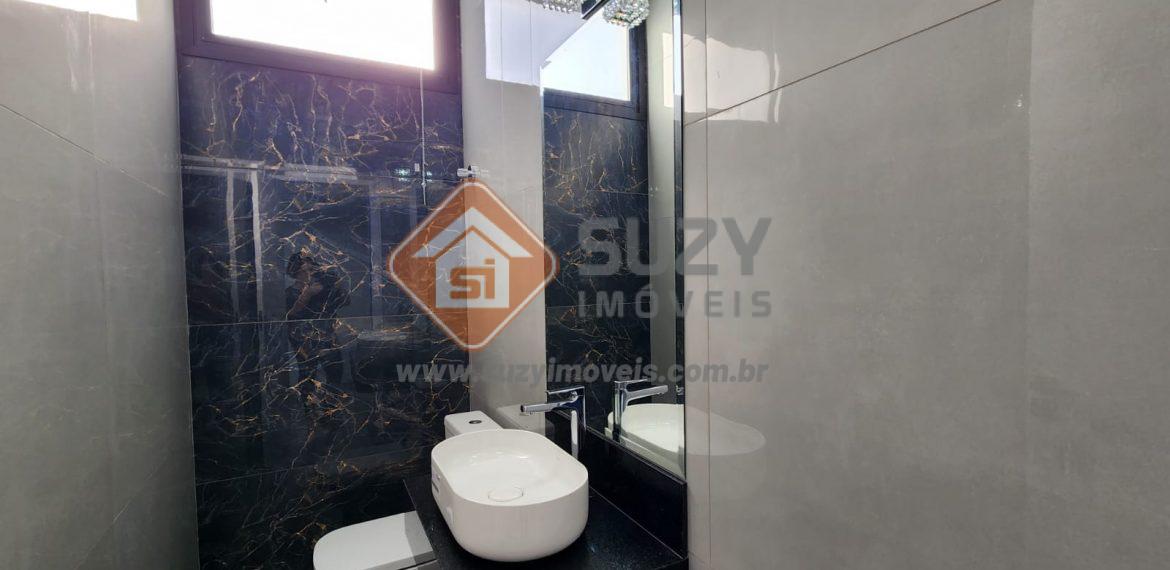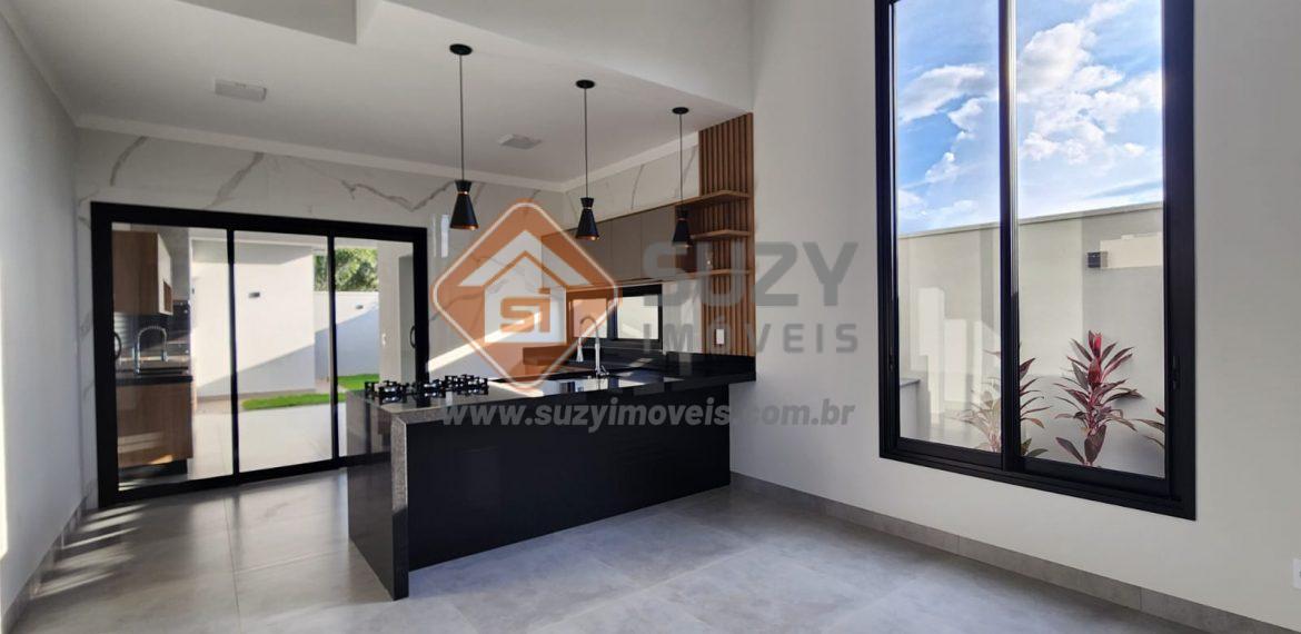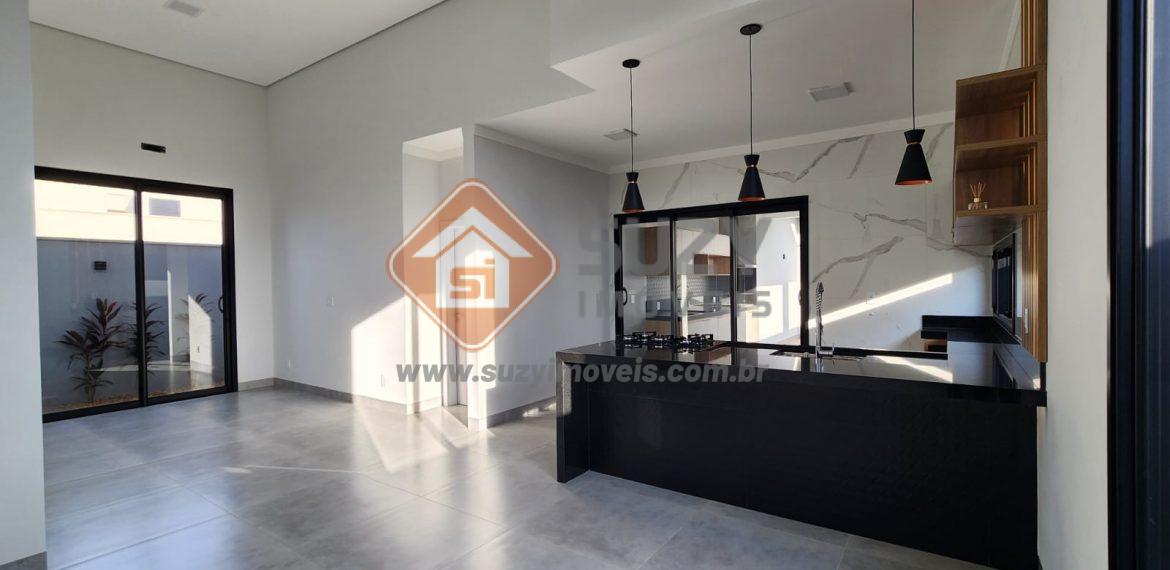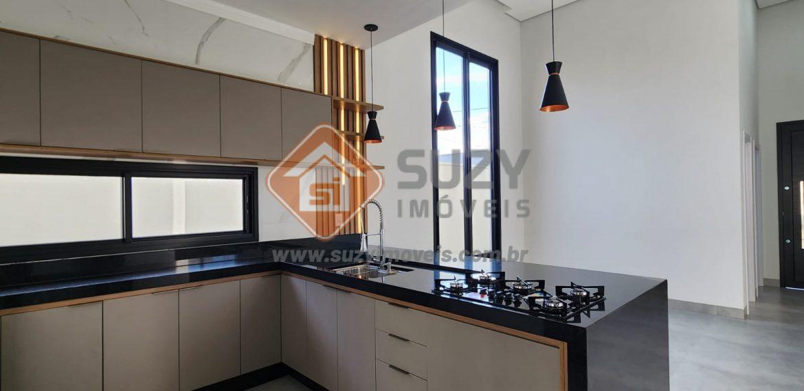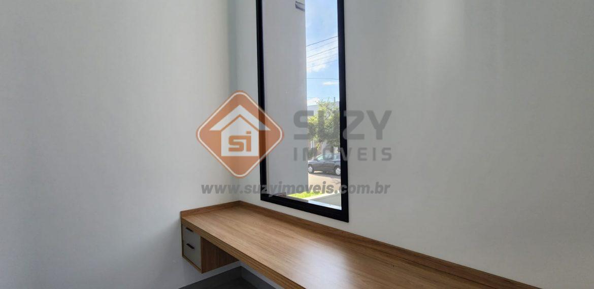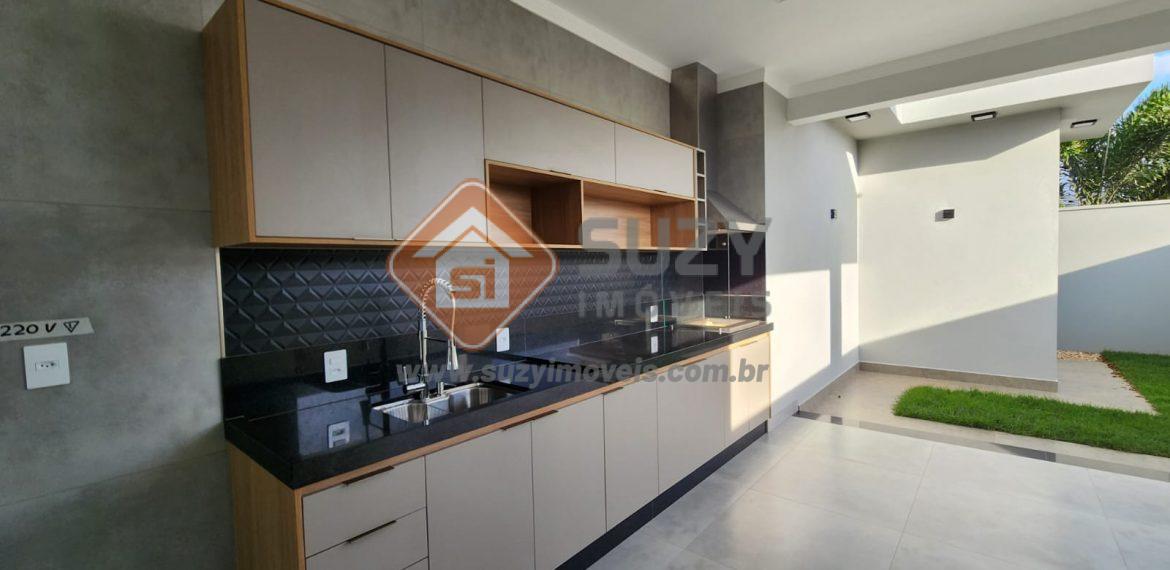 Imóvel novo com 03 suítes, sendo 01 máster com chuveiro duplo e porta automatizada, sala ampla para 02 ambientes (estar e jantar) com pé direito alto, escritório com armários, lavabo, cozinha estilo americana com ilha e cooktop, varanda gourmet com churrasqueira, área de serviço com armário, paisagismo, espaço para piscina, aquecimento solar, infraestrutura pronta para receber ar condicionado e garagem.