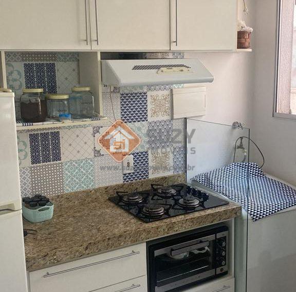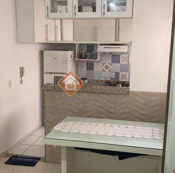 Apartamento com 02 dormitórios, w.c social, sala de estar, cozinha com armários, área de serviço e 01 vaga de garagem.