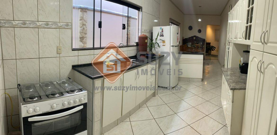 Imóvel com excelente localização no bairro, constituído por 03 dormitórios, todos com armários, sendo 01 suíte, sala de visitas ampla, w.c social, copa e cozinha com armários, área de serviço, área gourmet com churrasqueira e forno a lenha, w.c externo, quintal, garagem com portão eletrônico e cerca elétrica.