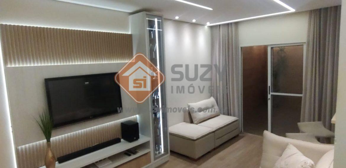 Linda casa, constituída por 02 dormitórios, ambos com armários planejados, sendo 01 com ar condicionado, cabeceira queen e painel para TV até 40” e 01 com bancada para escritório com LED embutido, sala de estar com painel, cristaleira e ar condicionado, w.c social completo, cozinha com armários planejados, fogão, forno embutido e coifa, área de serviço, quintal e 03 vagas de garagem com portão lateral.