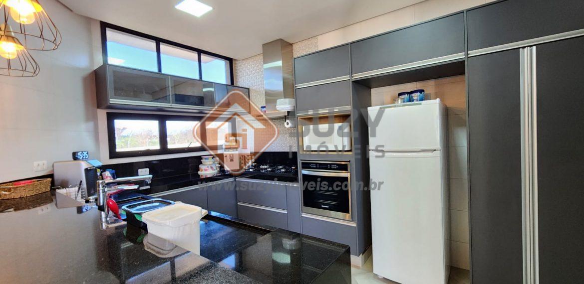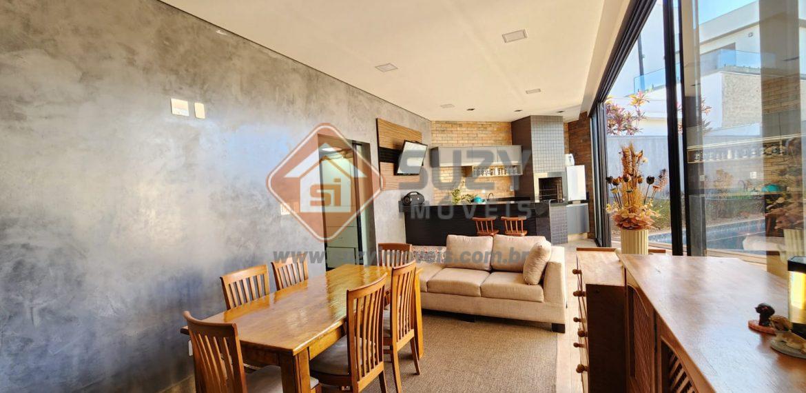 Linda casa em condomínio de alto padrão, constituído por 03 dormitórios (01 suíte máster), todos com armários, w.c social, escritório com armários, lavabo, sala de estar e jantar, cozinha em conceito aberto completa com armários, cooktop, exaustor e forno, área de serviço com armários, varanda gourmet ampla com churrasqueira, piscina aquecida com hidromassagem, w.c externo, jardim e 04 vagas de garagem, sendo 02 cobertas.