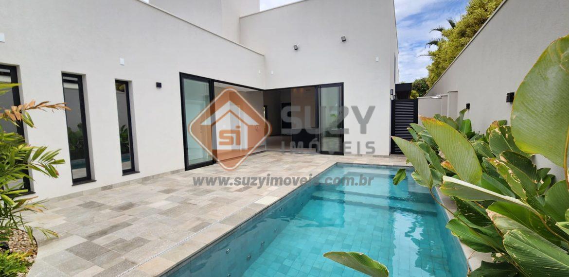 Linda casa em condomínio alto padrão com 4 suítes sendo uma máster com closet e umapode ser reversível como sala de TV privativa, lavabo, sala ampla com 2 ambientes e pé-direito alto integradas ao espaço gourmet,escritório,  cozinha com coifa, área de serviço, despensa e quarto de despejo, piscina,w.c externo,  ducha externa, paisagismo, iluminação, garagem para 2 carros cobertos e 2 descobertos