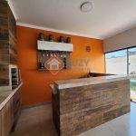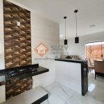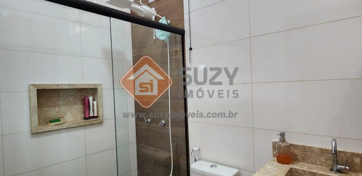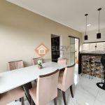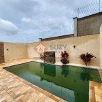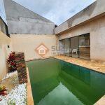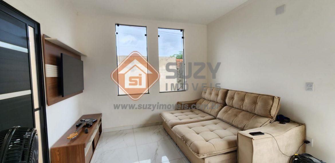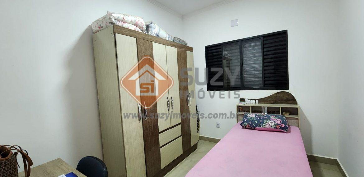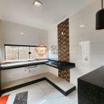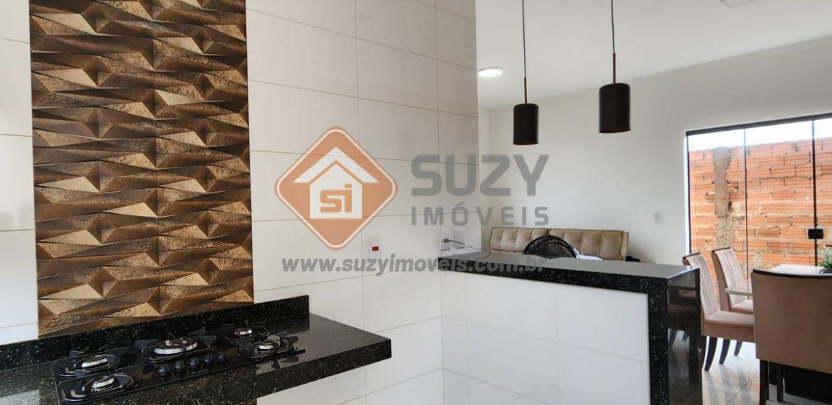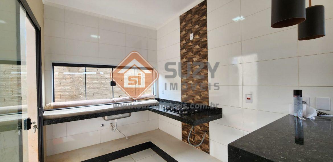 03 dormitórios sendo 01 suíte, w.c social, sala de visitas, sala de jantar com cozinha americana com cooktop, balcão, área de serviço, linda área gourmet com churrasqueira  fechada com vidro, balcão, armários, w.c externo, piscina, quintal, garagem descoberta para 03 carros.