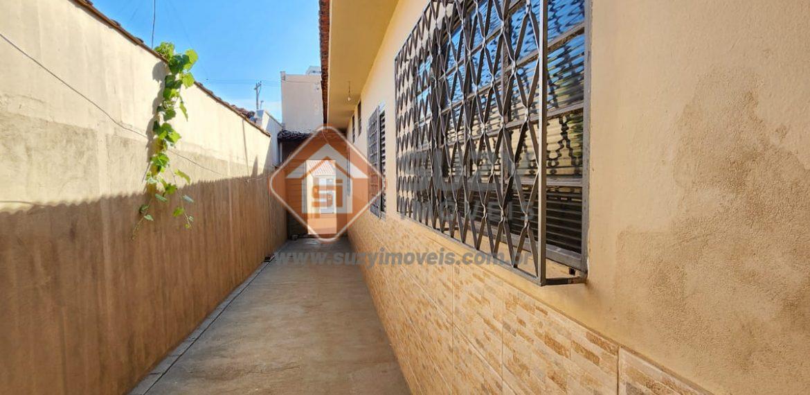 Casa com 02 dormitórios, 01 com armário, sendo 01 suíte, w.c social, sala de visitas, cozinha com gabinete, área de serviço, quartos nos fundos, quintal, garagem grande para 01 carro coberto e 03 fora da cobertura.
