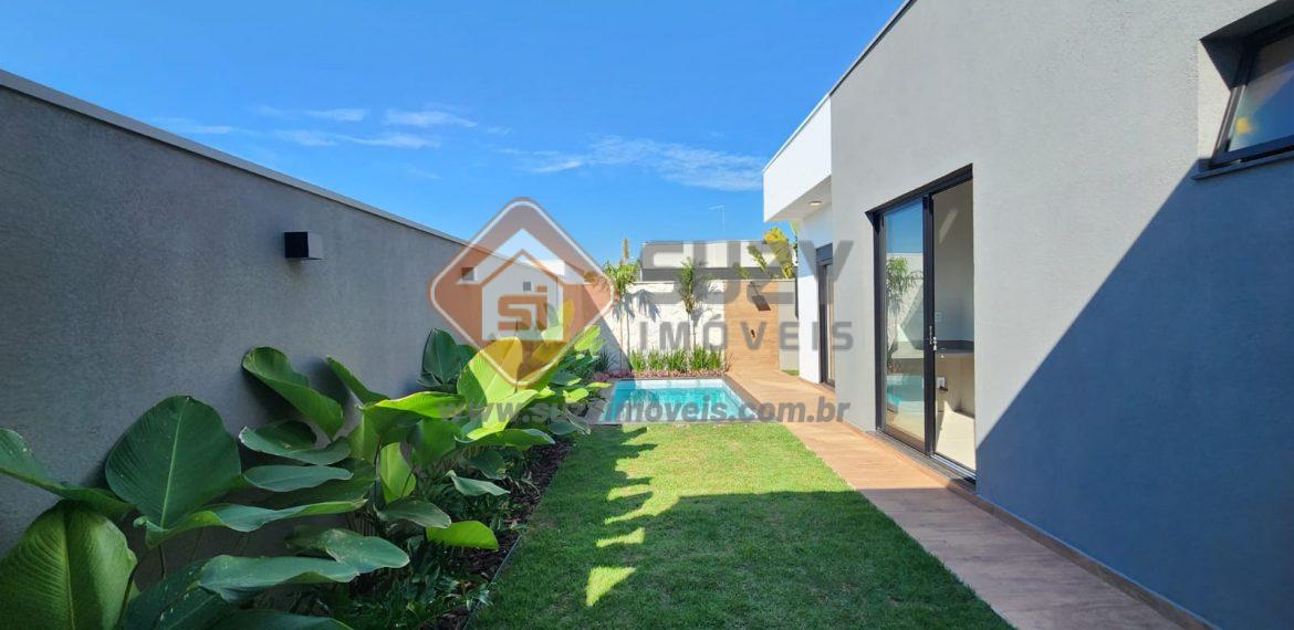 Maravilhosa casa recém construída com 03 suítes, sendo a principal com closet e 02 com armários , escritório, sala para 02 ambientes , pé direito alto, cozinha integrada repleta de armários, coifa, cooktop. forno elétrico, microondas na torre quente, iluminação em led projeto luminotécnico moderno, área gourmet com churrasqueira, piscina aquecida, armários externos, w.c, área de serviço com armários, paisagismo, energia fotovoltaica, esquadrias automatizadas, aquecimento torneiras, chuveiros com boiler, garagem para 02 carros cobertos e 02 fora da cobertura.
