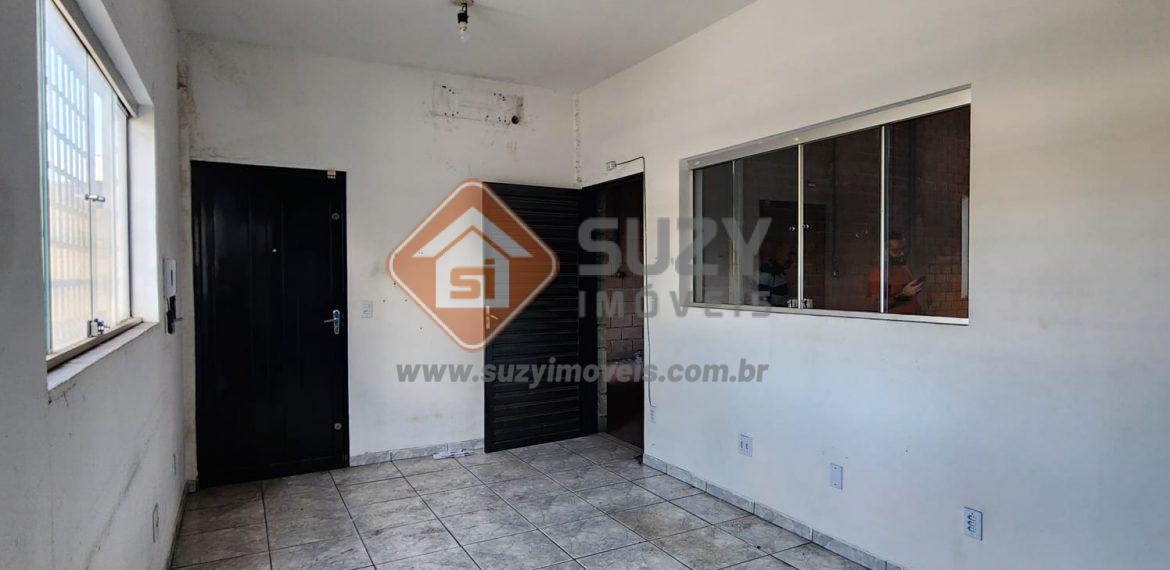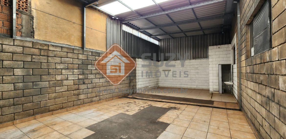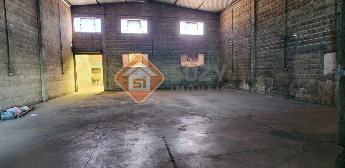 Barracão pronto com salão amplo, w.c, área grande coberta nos fundos, escritório com w.c, w.c externo, cozinha, hall de entrada e estacionamento com 03 vagas na frente.