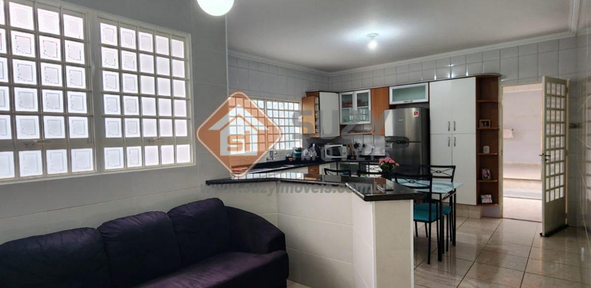 Linda casa com 02 dormitórios, sendo 01 suíte com armário planejado, w.c social, sala de visitas, sala de TV com ar condicionado, sala de jantar, cozinha completa de armários, área de serviço com armários, quintal, varanda grande, garagem para 03 carros cobertos.