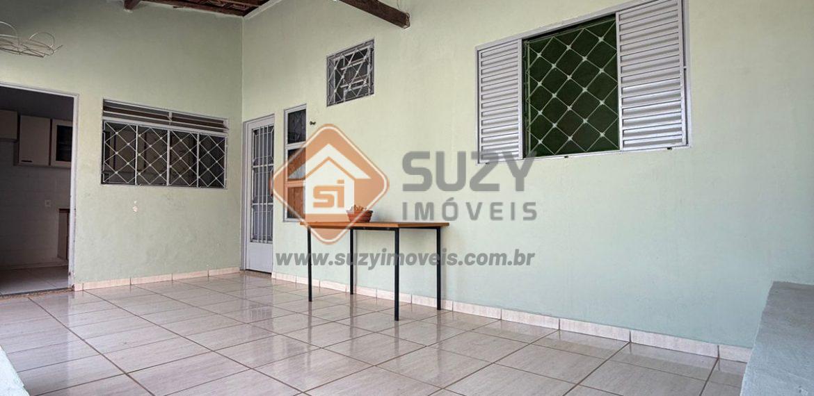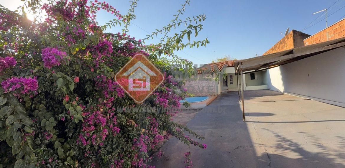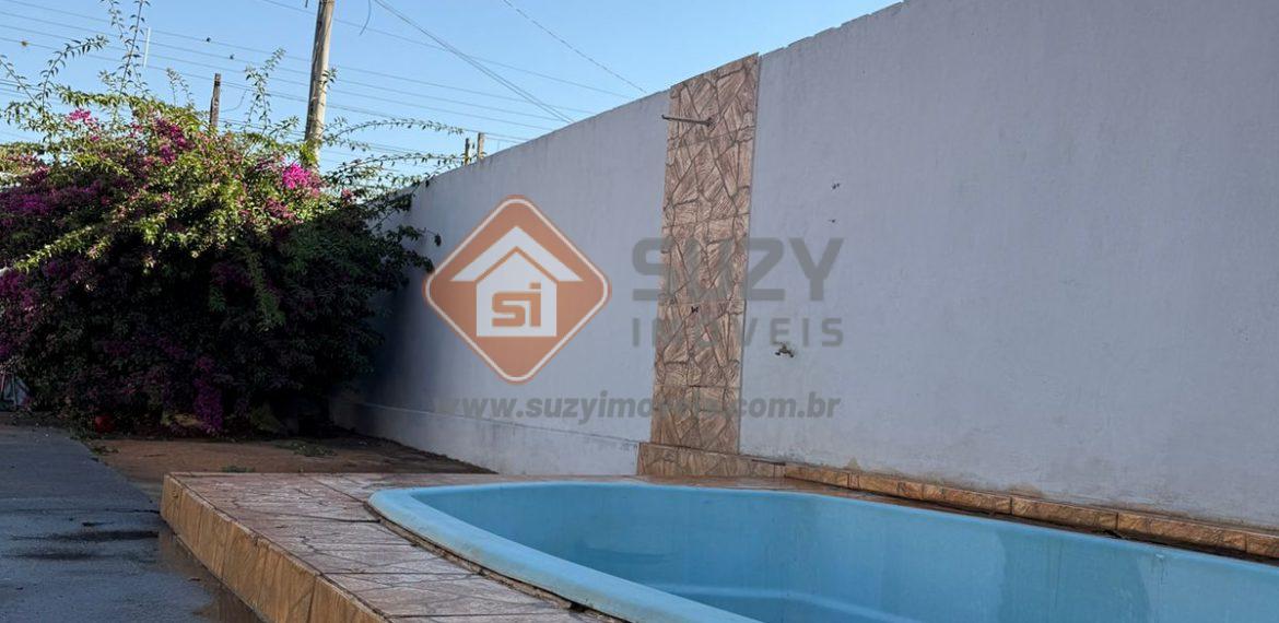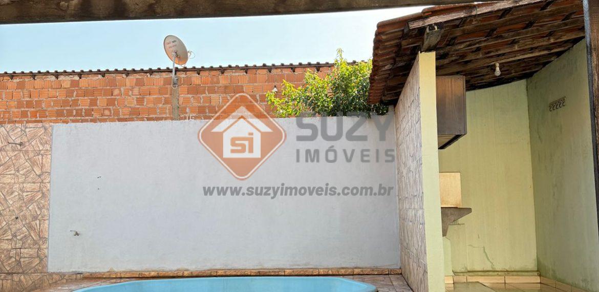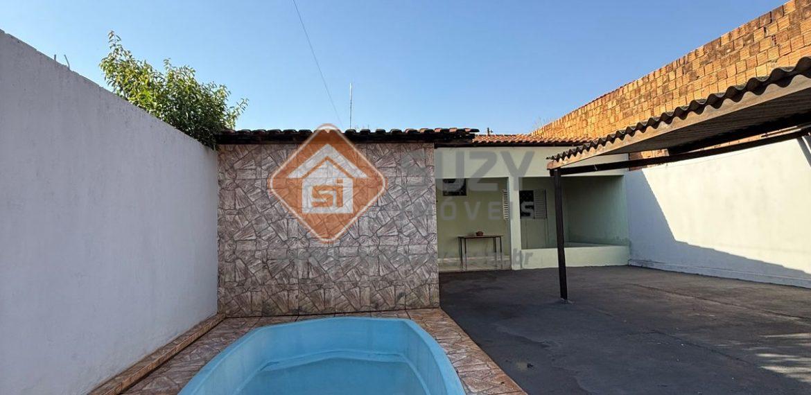 Casa com 2 dormitórios, sala de visita, w.c social, cozinha com armários, área de serviço, varanda , quintal, piscina, ducha e 02 vagas de garagem.