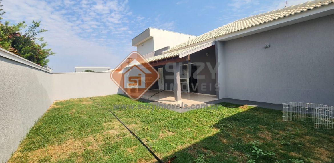 03 dormitórios com armários, sendo 02 suíte, sala de visitas, sala de jantar, w.c social, cozinha com armários, área de serviço com armários, área com churrasqueira, w.c externo, quintal grande gramado, 04 vagas de garagem sendo 02 cobertas e 02 descobertas.