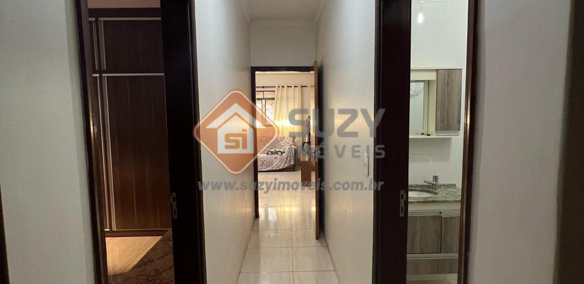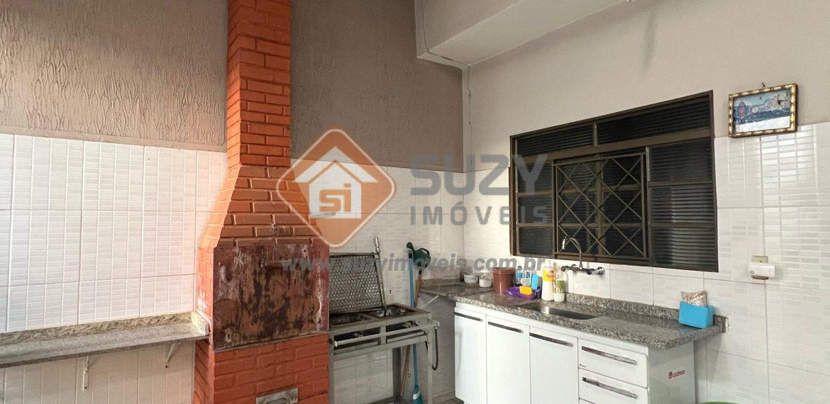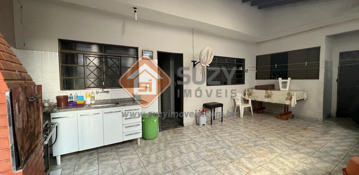 Casa com 03 dormitórios com armários, sendo 01 suíte, w.c social,sala de estar/TV, cozinha com armários, área de serviço com armários, edícula com churrasqueira e w.c externo, 01 quarto suíte, sala, varanda e garagem para 03 carros.