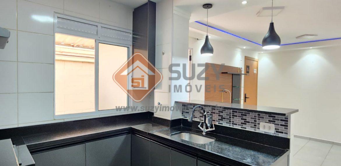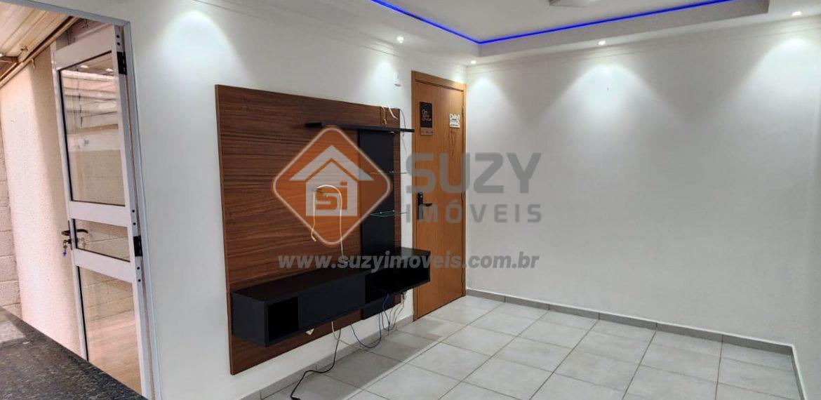 Apartamento térreo com 02 dormitórios com armários, w.c social completo, sala de estar com led e rack, cozinha planejada, quintal com área de serviço e telhado retratil, quintal lateral e principal, fechadura digital, 01 vaga de garagem coberta.