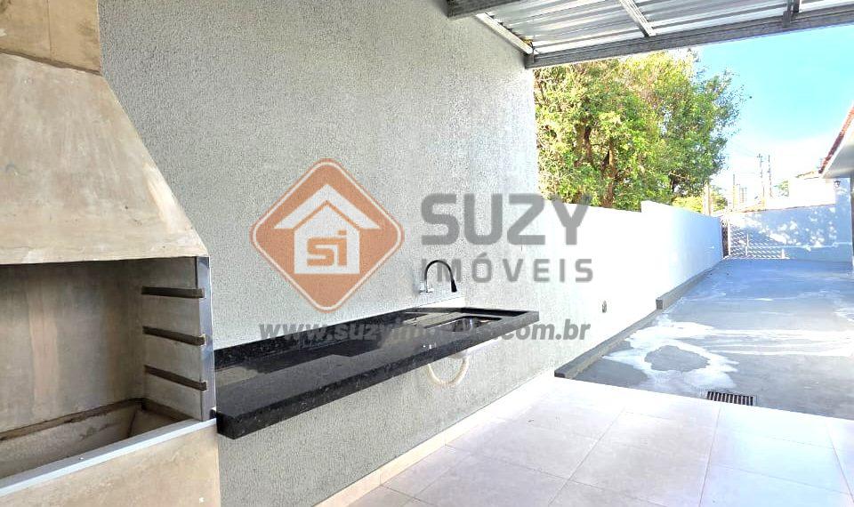 Casa com 03 dormitórios sendo 02 com armários, 01 suíte, sala ampla para 02 ambientes, w.c social, cozinha aberta estilo americana, área de serviço, área gourmet com churrasqueira, w.c externo, quintal, garagem para 05 carros sendo 01 coberta.