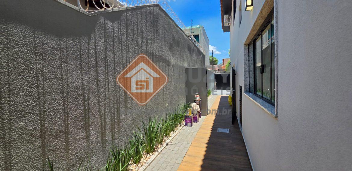 03 dormitórios, sendo 01 suíte e 2 com armários, sala para 2 ambientes, lavabo, w.c social, cozinha com armários, área de serviço com armários, área gourmet com churrasqueira e armários, quintal grande, deck, 04 vagas de garagem descobertas, ar condicionado, cerca elétrica, câmera de monitoramento.