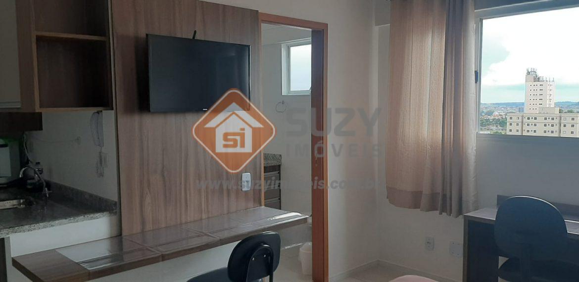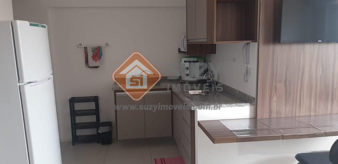 Apartamento tipo Studio com 01 suíte com armários, ar condicionado, cama de casal box, TV smart, 2 cadeiras, ventilador de teto, cozinha com armários, geladeira, cooktop, bebedouro, microondas 1 vaga de garagem