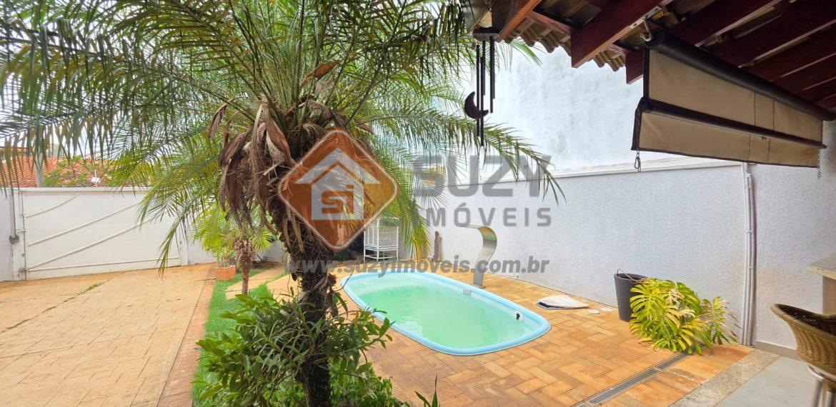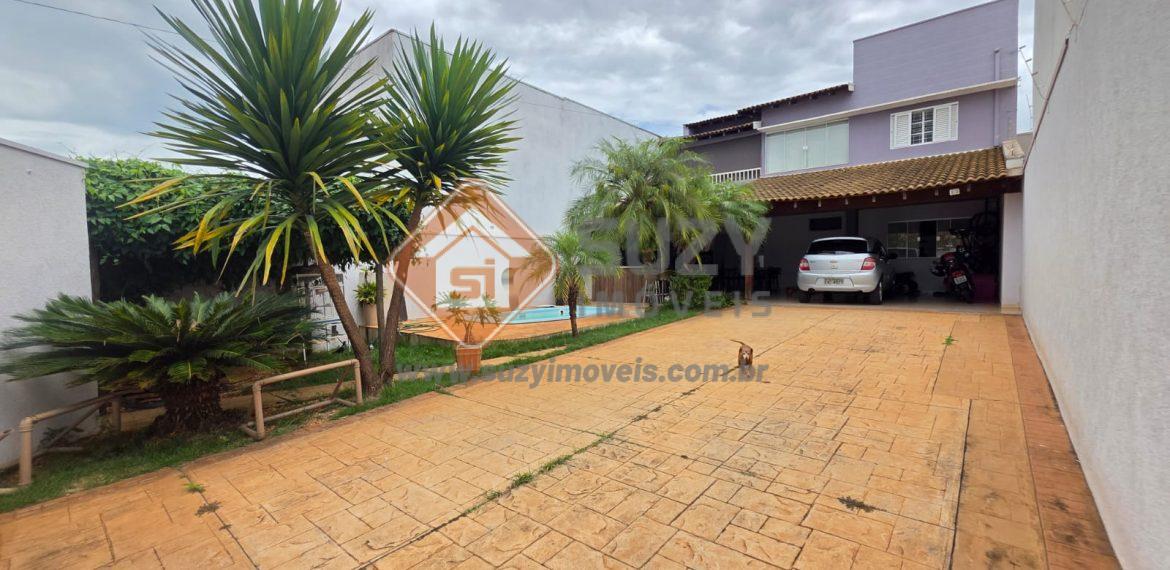 Piso térreo, sala de estar, sala de jantar com cozinha estilo americano com armários, coifa, área de serviço,w.c social, área gourmet com churrasqueira, varanda, garagem para 02 carros cobertos e 03 descobertos, piscina, paisagismo.