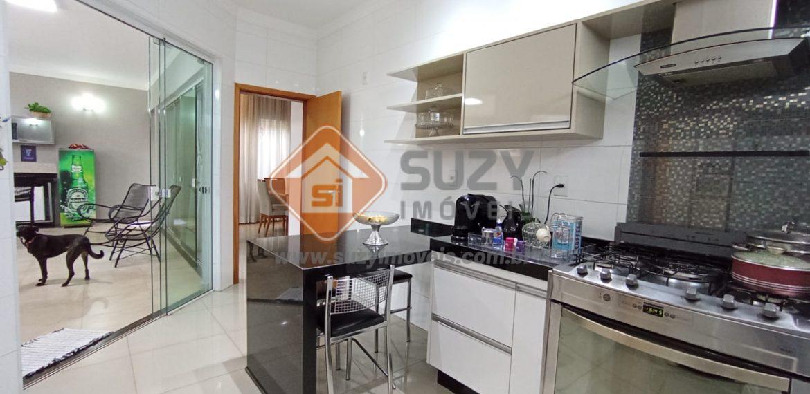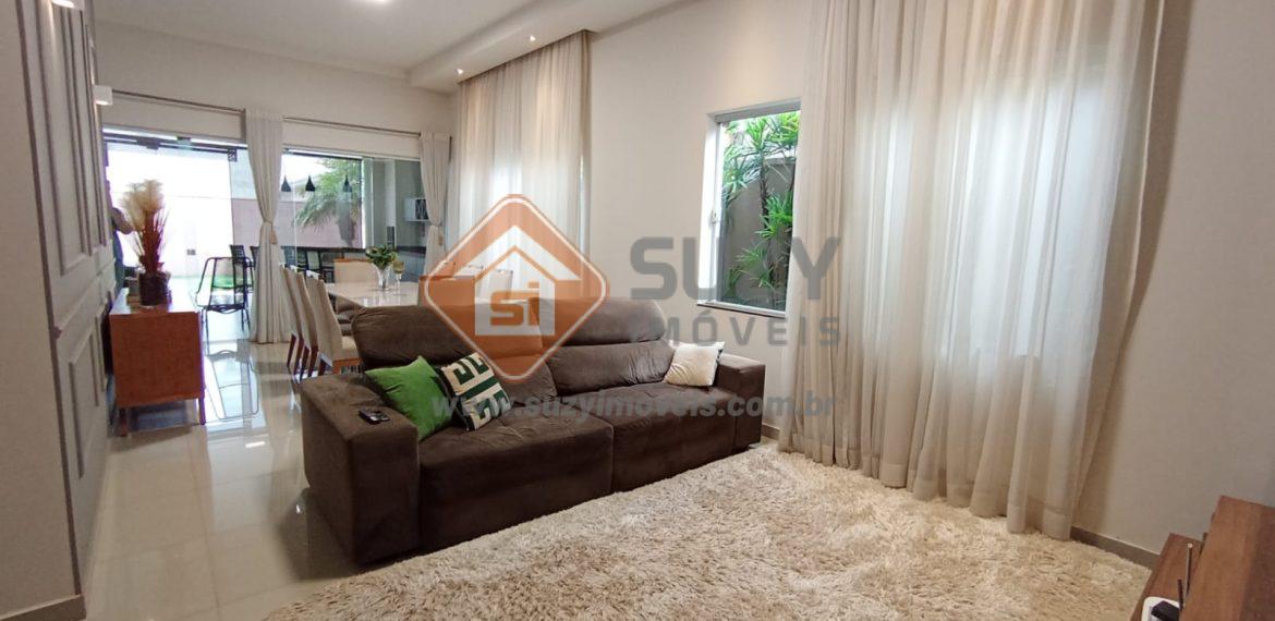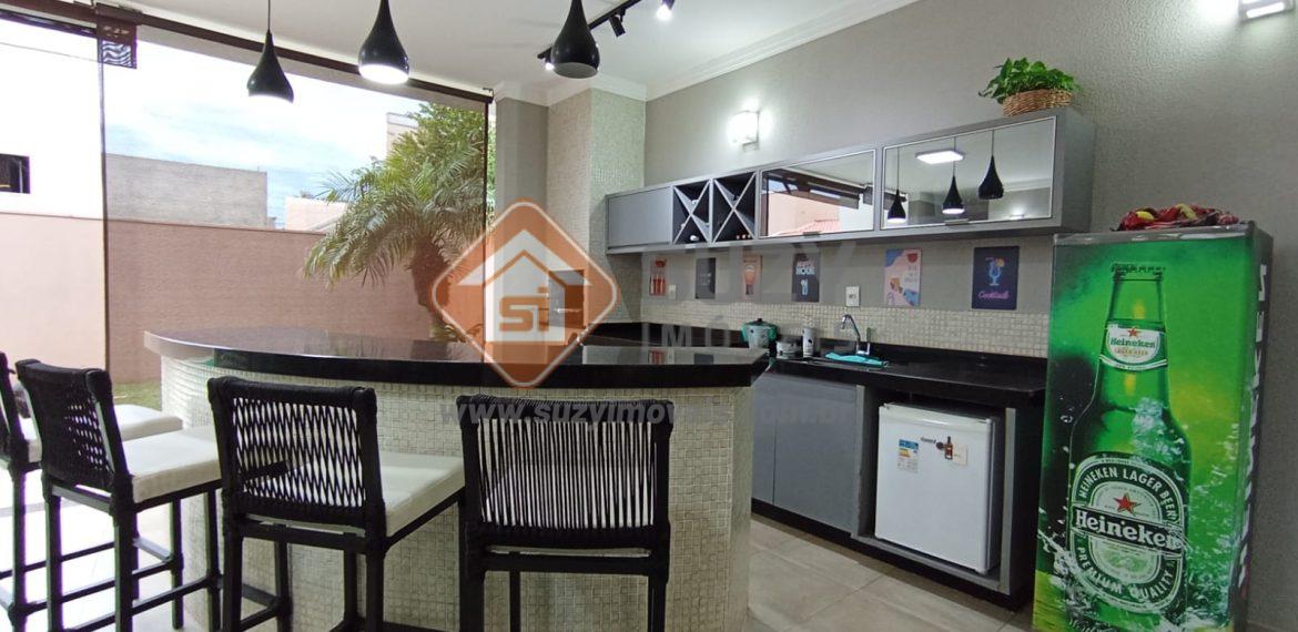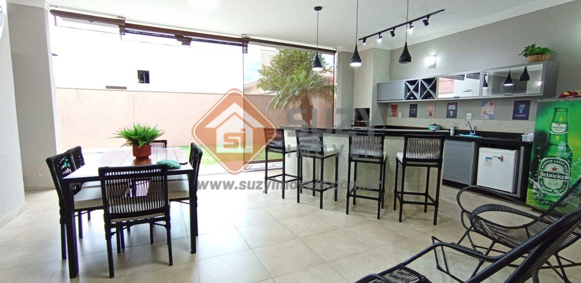 Casa com 03 dormitórios, sendo 01 suíte com closet e ar condicionado e piso laminado, 02 w.c  completos,  sala de estar ampla com painel de TV e cortinas, sala de jantar,  lavabo, cozinha completa com armários planejados, mesa em mármore e fogão embutido  de 5 bocas,  despensa, área de serviço com armários planejados,  área gourmet com churrasqueira, bancada, armários planejados e toldos de proteção,  quarto de despejo, piscina aquecida com ducha,  quintal gramado,  toda a área comum em piso porcelanato, acesso pelos 2 corredores laterais, cortina blackout na porta de vidro de acesso à área externa, lindo paisagismo, 04 vagas de garagem  sendo 02 cobertas e 02 descobertas.