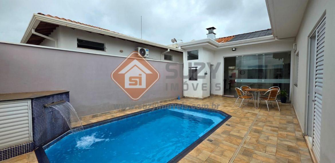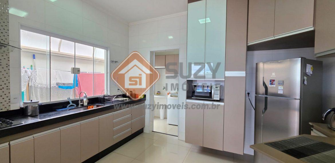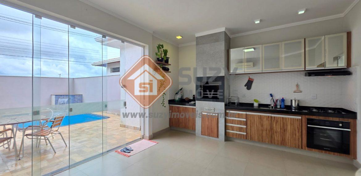 Linda casa com 03 suítes repletas de armários, ar condicionado, roupeiro no corredor, escritório com armários, lavabo, sala de estar/TV, sala de jantar, cozinha ampla com planejados, balcão, área gourmet fechada em vidro com churrasqueira, área de serviço com armários, piscina, quintal, corredores laterais, garagem para 02 carros cobertos e 02 fora da cobertura.