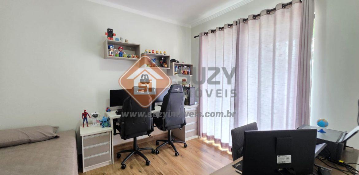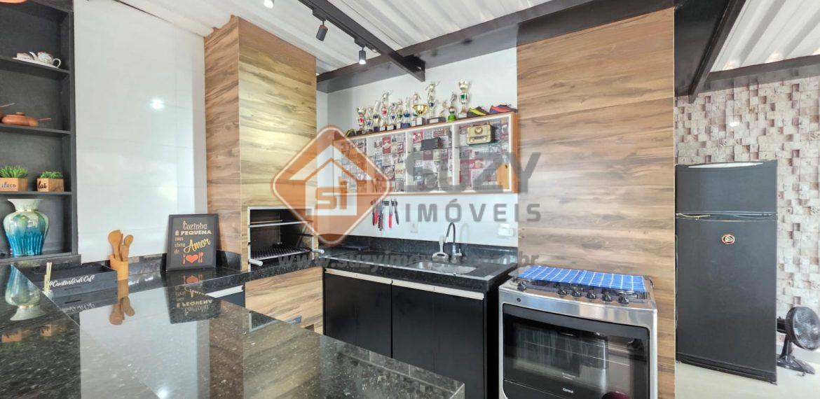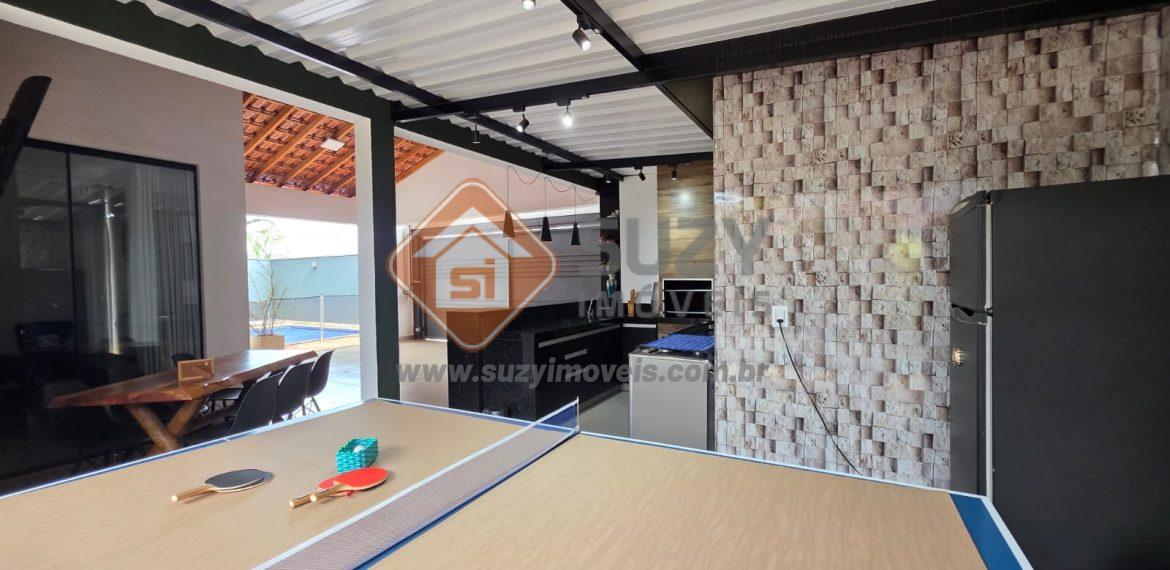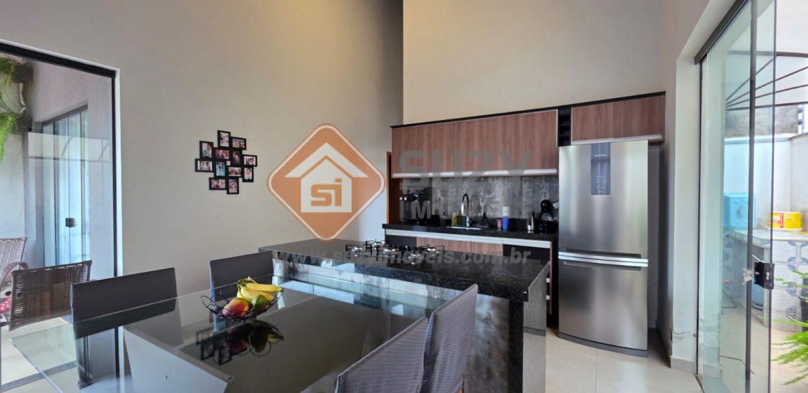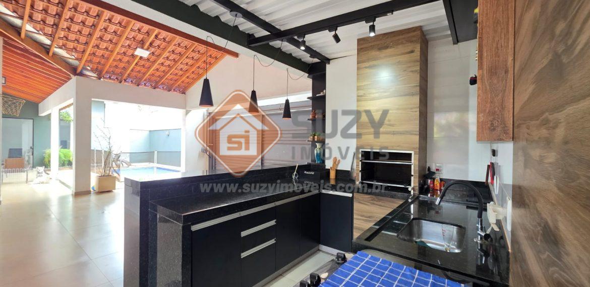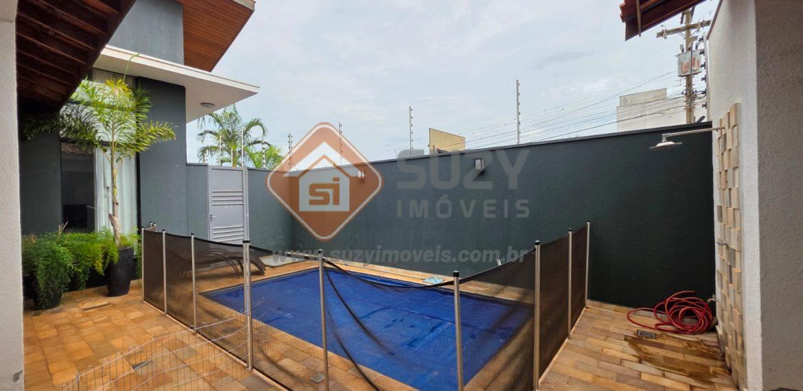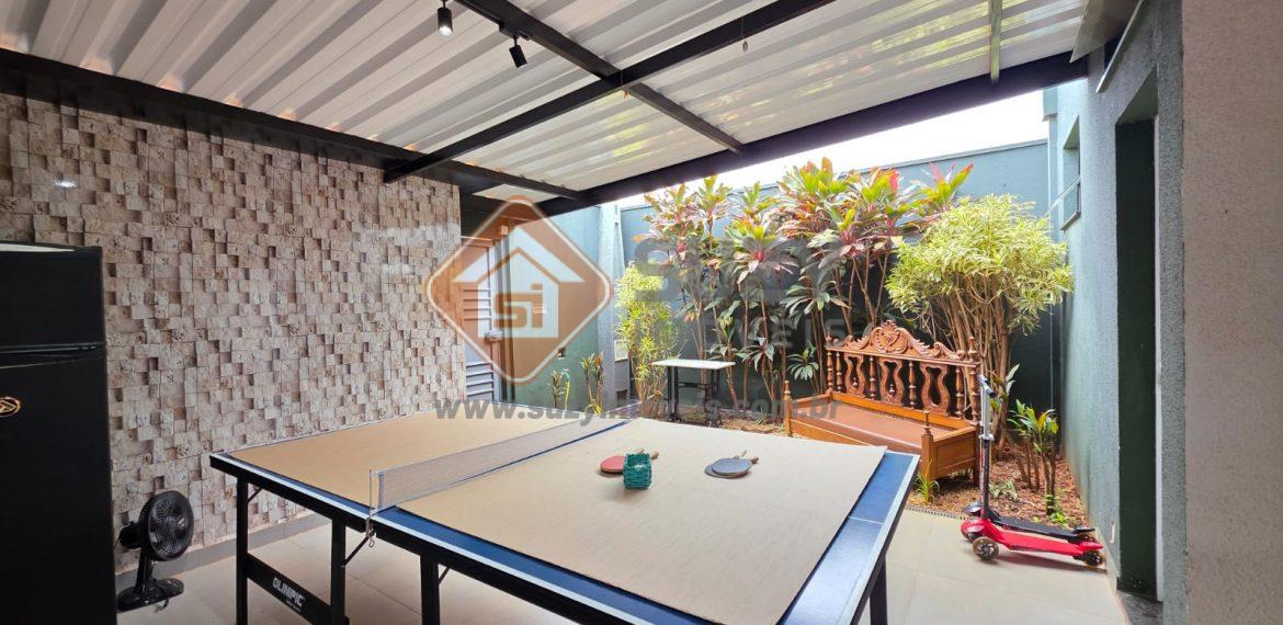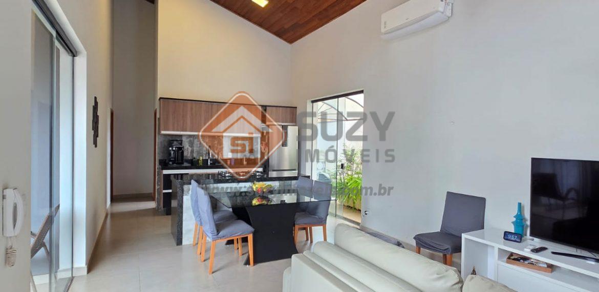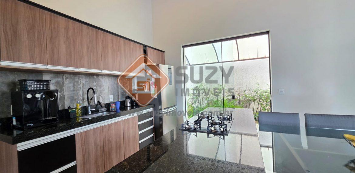 Casa com 03 dormitórios todos com armários e ar condicionado, sendo 01 suíte, 01 com bancada para escritório, roupeiro na extensão corredor, w.c social completo, sala para 02 ambientes( estar/ jantar), cozinha integrada com armários, cooktop, área de serviço com armários, área externa lateral, varanda gourmet com churrasqueira, balcão, piscina aquecida, jardim , lavabo externo, garagem para 3 carros cobertos .