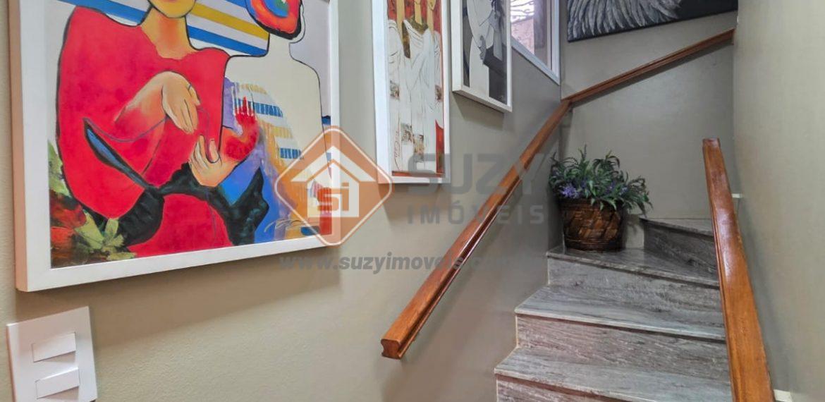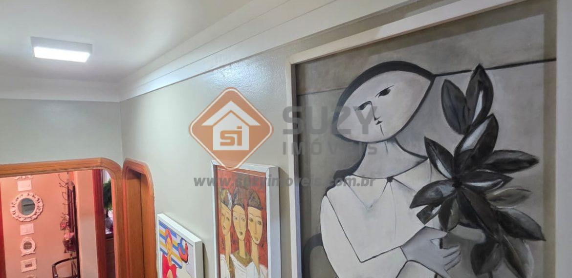 Piso superior 04 dormitórios, sendo 01 usado para sala de TV e 01 suíte completa, todos com armários e ar condicionado, varanda com vista para rua principal, 01 closet, w.c social, área de serviço grande com varanda