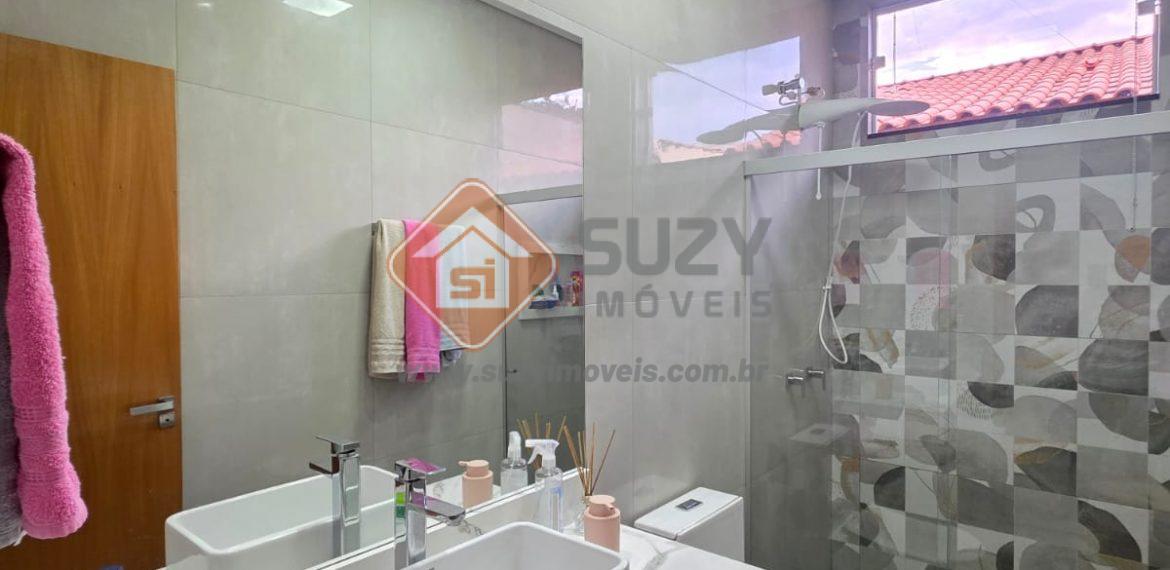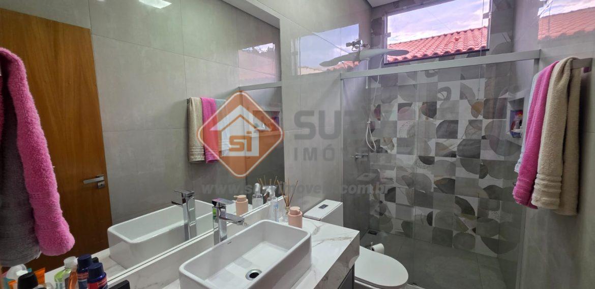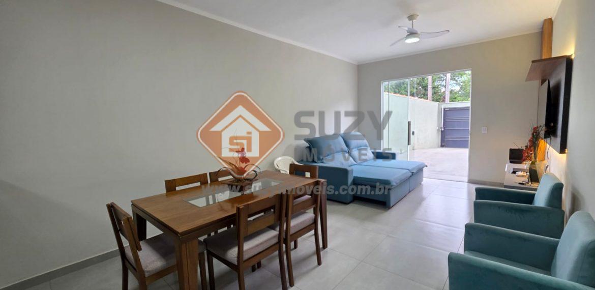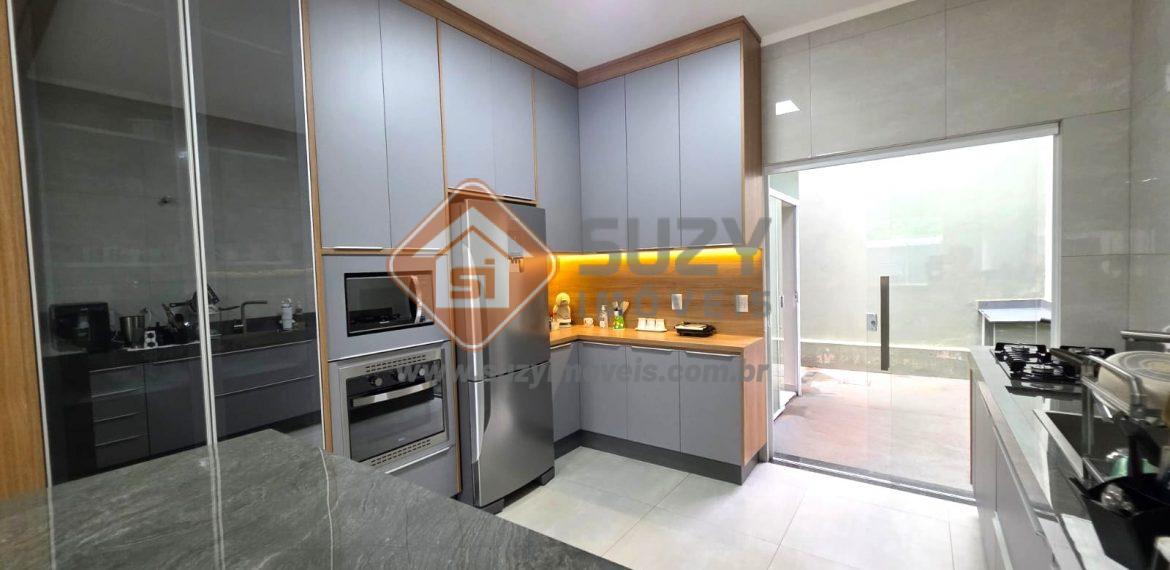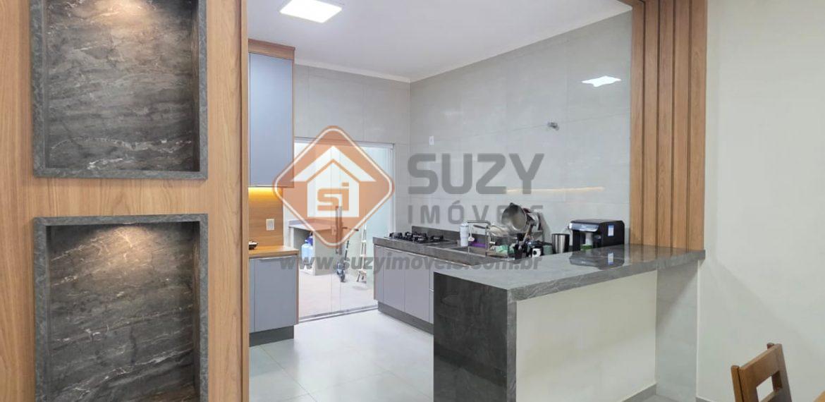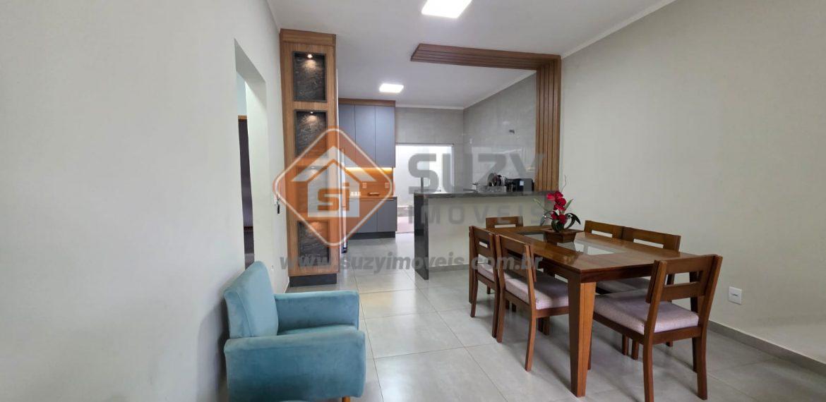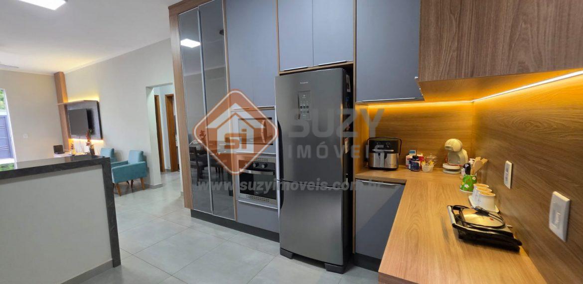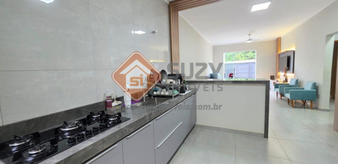 Casa nova com 03 dormitórios, sendo 01 suíte, 02 com armários planejados, w.c social, cozinha estilo americano completo de armários, louceiro com led, cooktop, bancada, ilha, sala de visitas 2 ambientes com rack planejados, área de serviço com armários, fino acabamento, quintal grande e garagem descoberta.